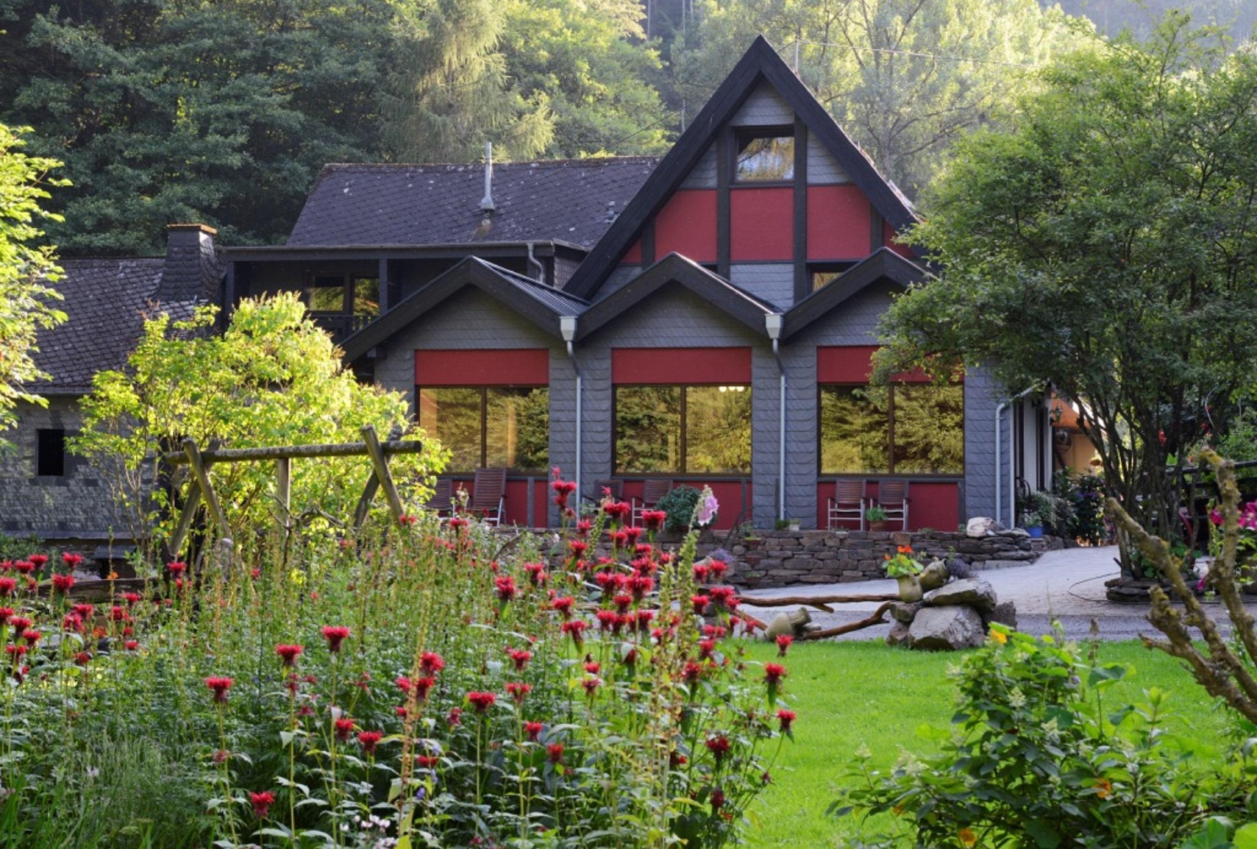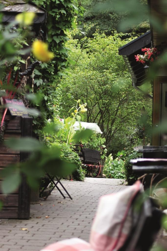 Die Schmausemühle kann man als eine Art Mittelpunkt des Tales bezeichnen. Nicht nur, dass wir nun etwa die Hälfte unseres Wanderweges bewältigt haben, hier ist auch eine Nahtstelle von der einen auf die andere Talseite. Sowohl von südlicher Richtung aus Sevenich - Heyweiler als auch von Norden her aus Gondershausen - Beulich führen Fahrwege ins Tal, die sich an der Schmausemühle treffen. Der Weg von Gondershausen erhielt im Jahre 2000 sogar eine Asphaltdecke. Die Besitzer, die nun schon in der 8. Generation in der Mühle wohnen, haben ihr Haus zu einem beliebten und viel besuchten Ausflugs- und Ferienziel gemacht, in dem Urlaubsgäste Ruhe und Erholung finden.