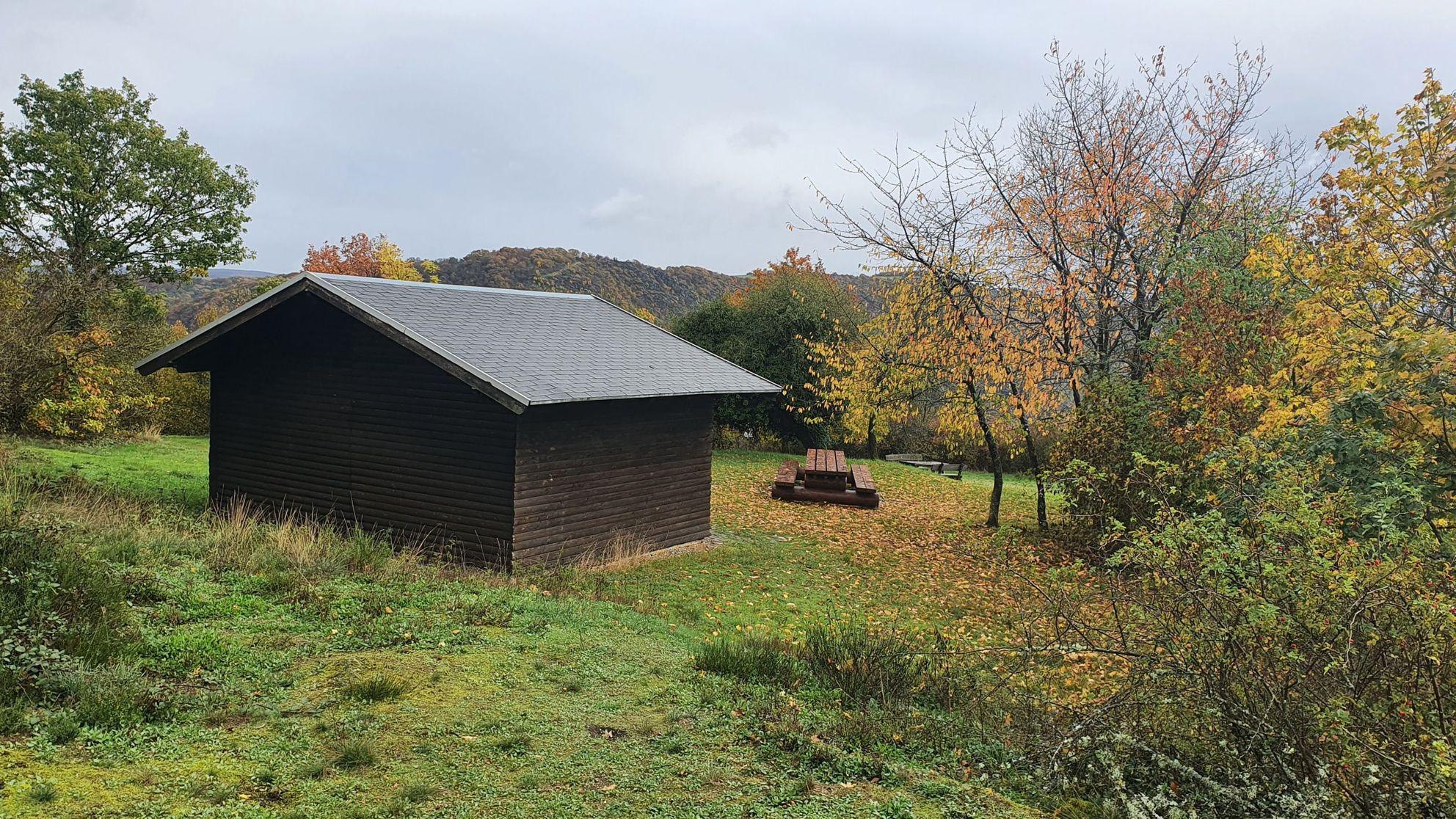 Aussichtspunk Niederburger Klüppelberg mit Grillhütte auf der Traumschleife "Hunsrück-Mittelrhein" zwischen Oberwesel und Niederburg.