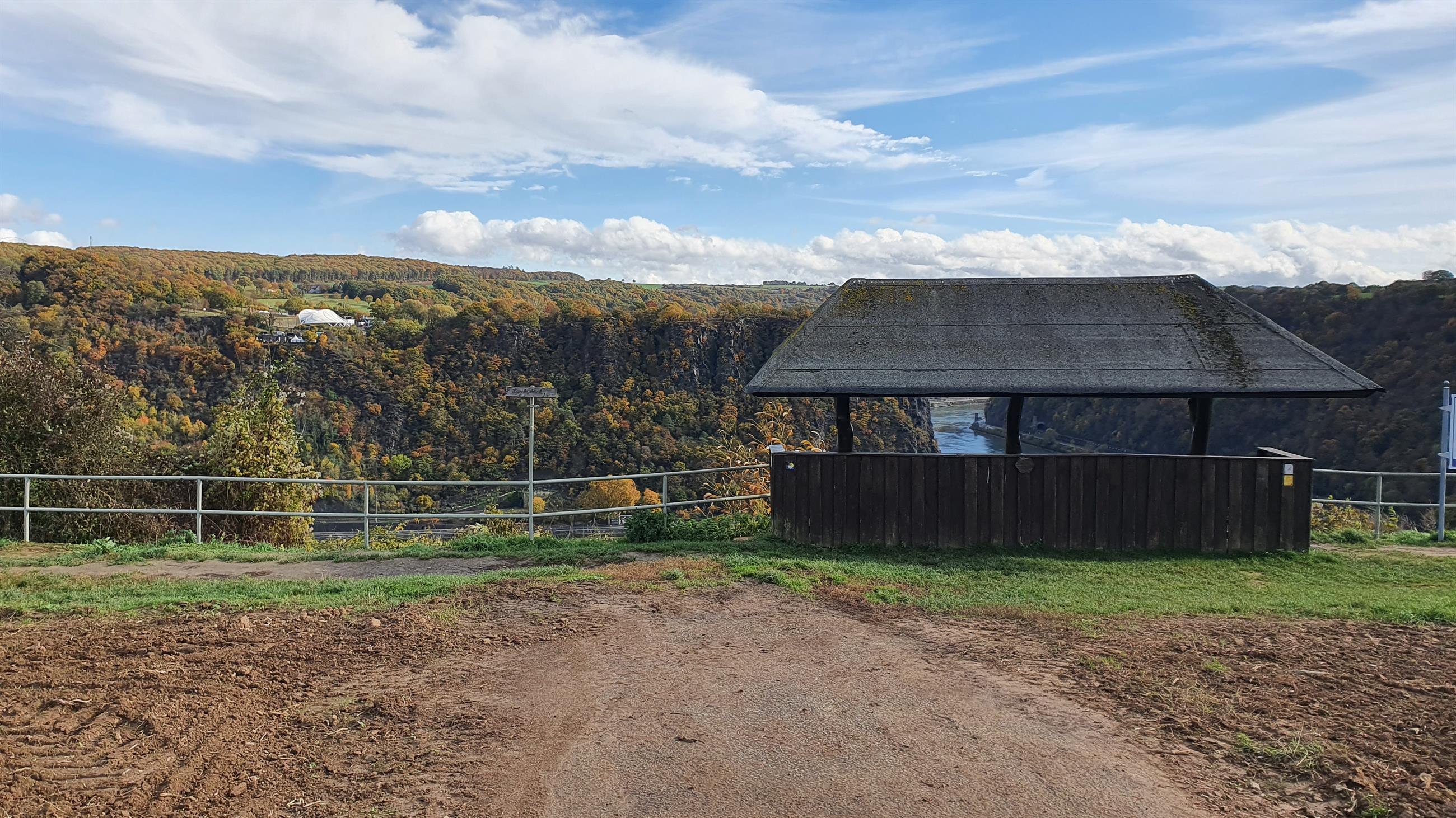 Traumhafter Aussichtspunkt auf den Loreleyfelsen und der Bühne. Eine Picknickbank läd zum Verweilen ein.