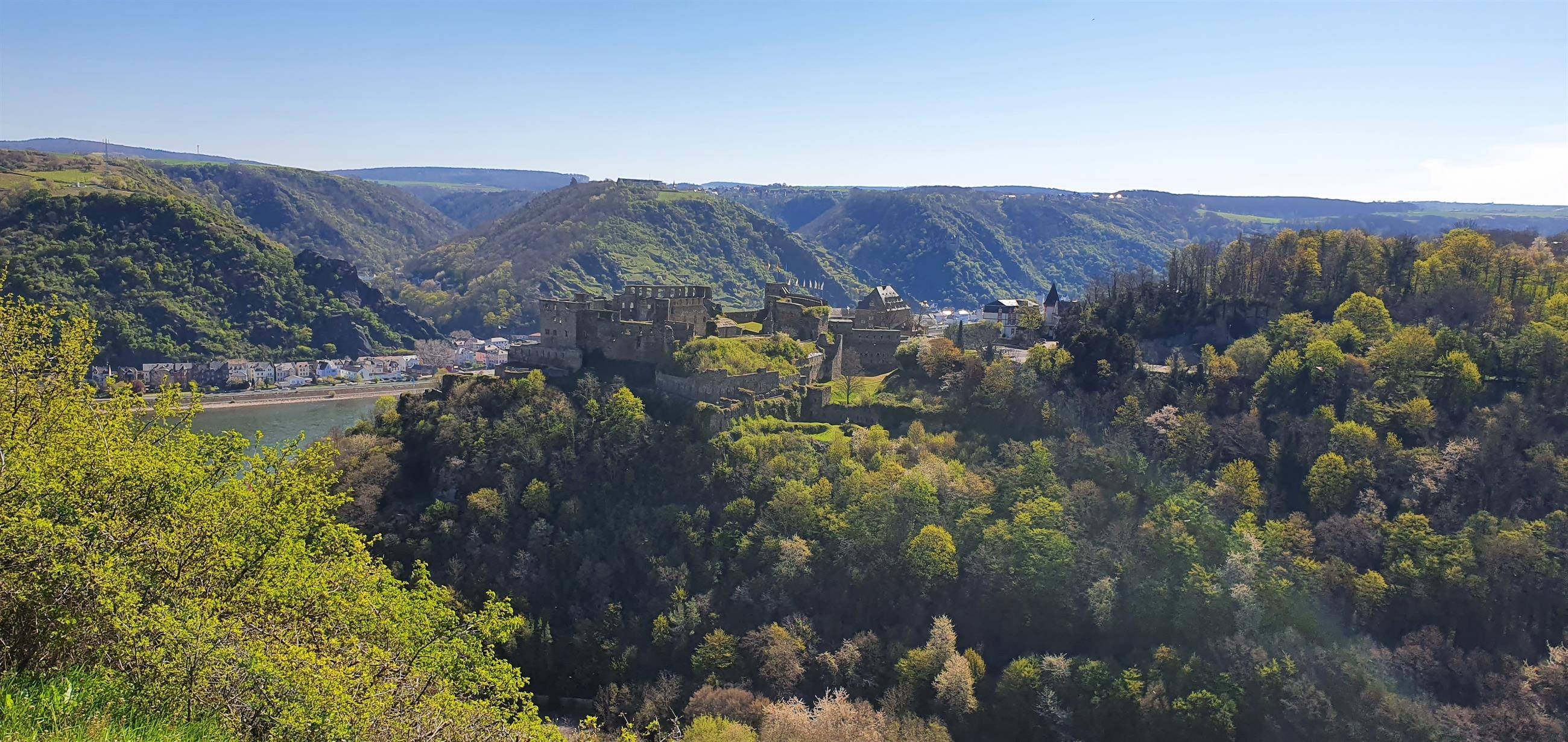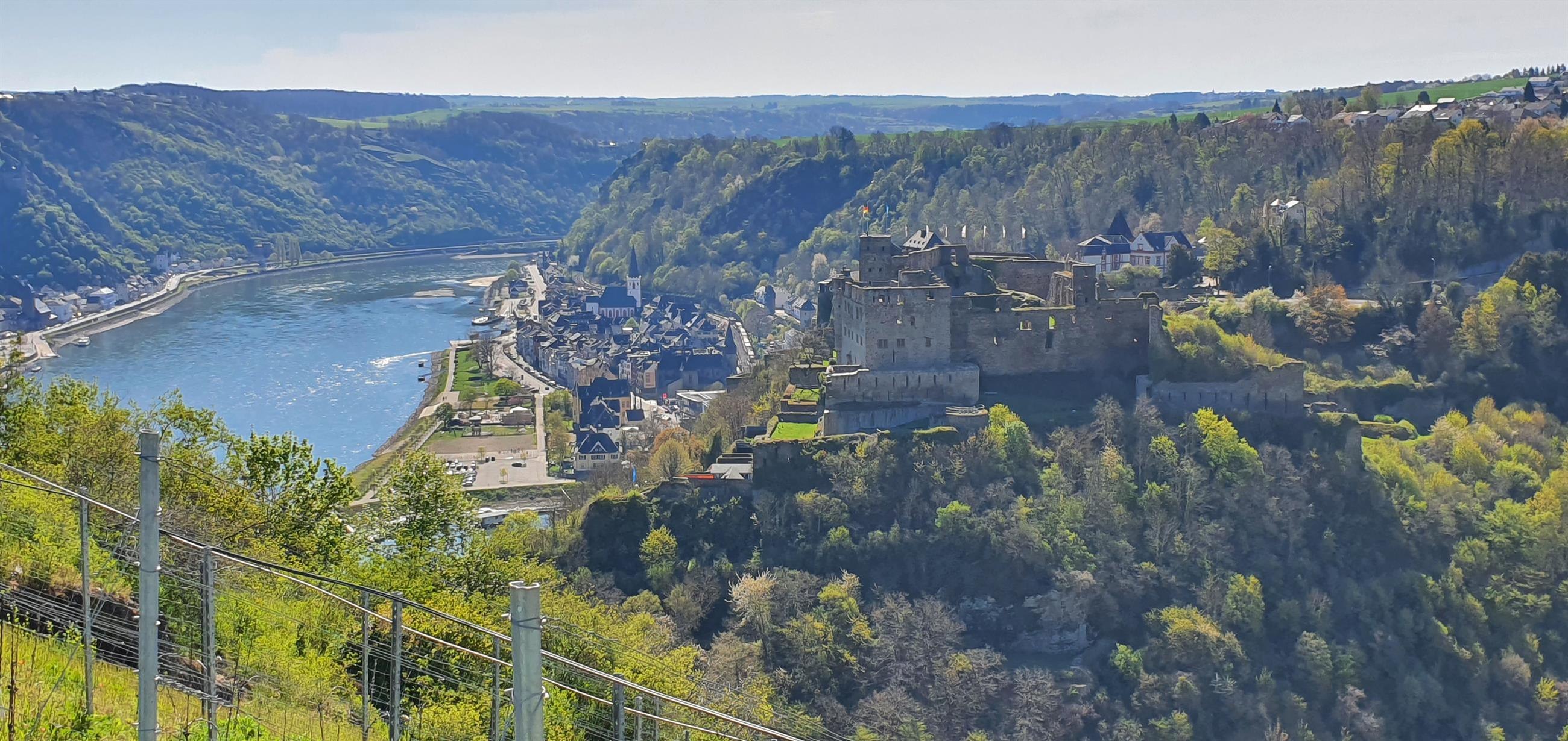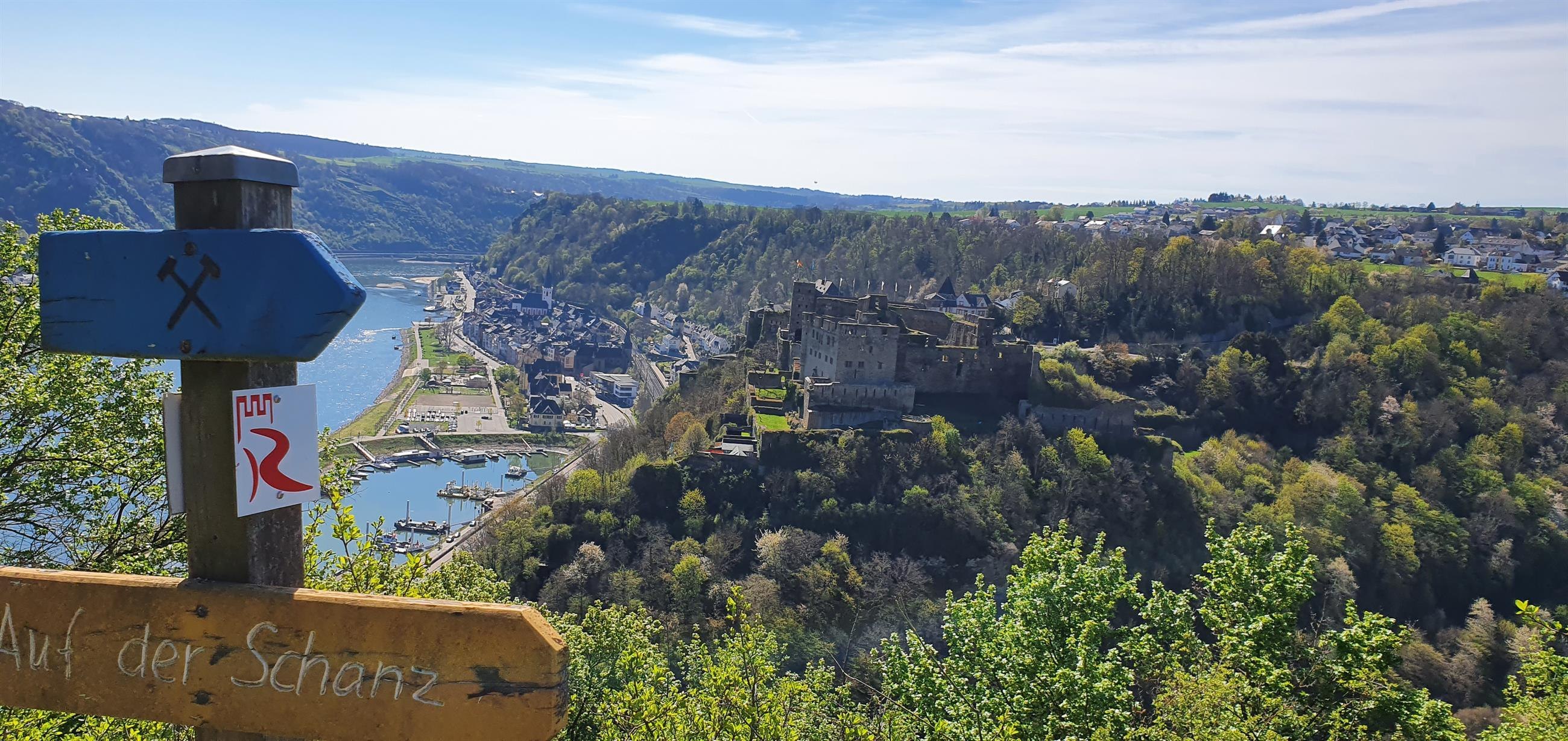 Aussichtspunkt "Rheinfelsblick" gegenüber vom Rheingoldbad in Werlau, mit toller Aussicht auf die Burg und das Mittelrheintal.