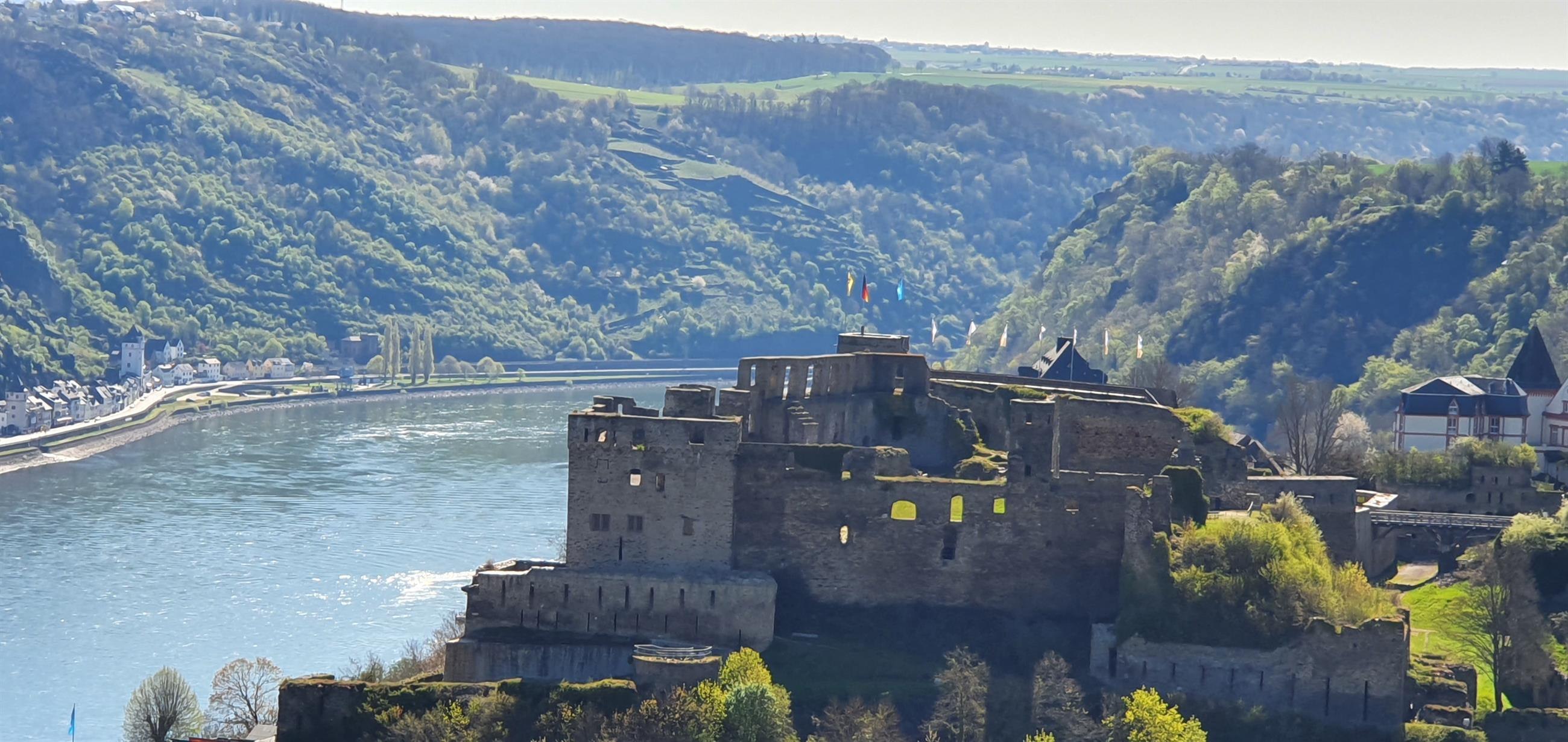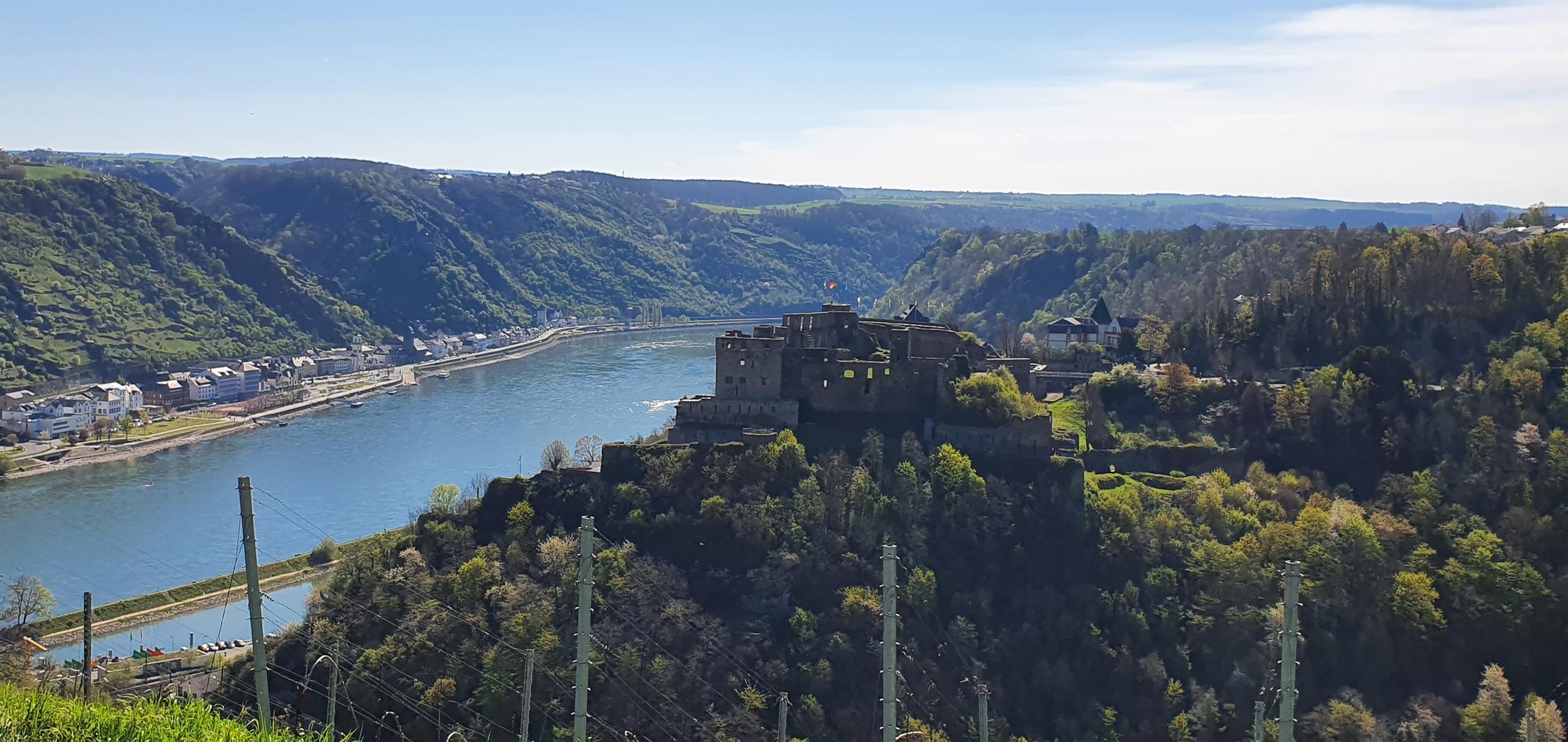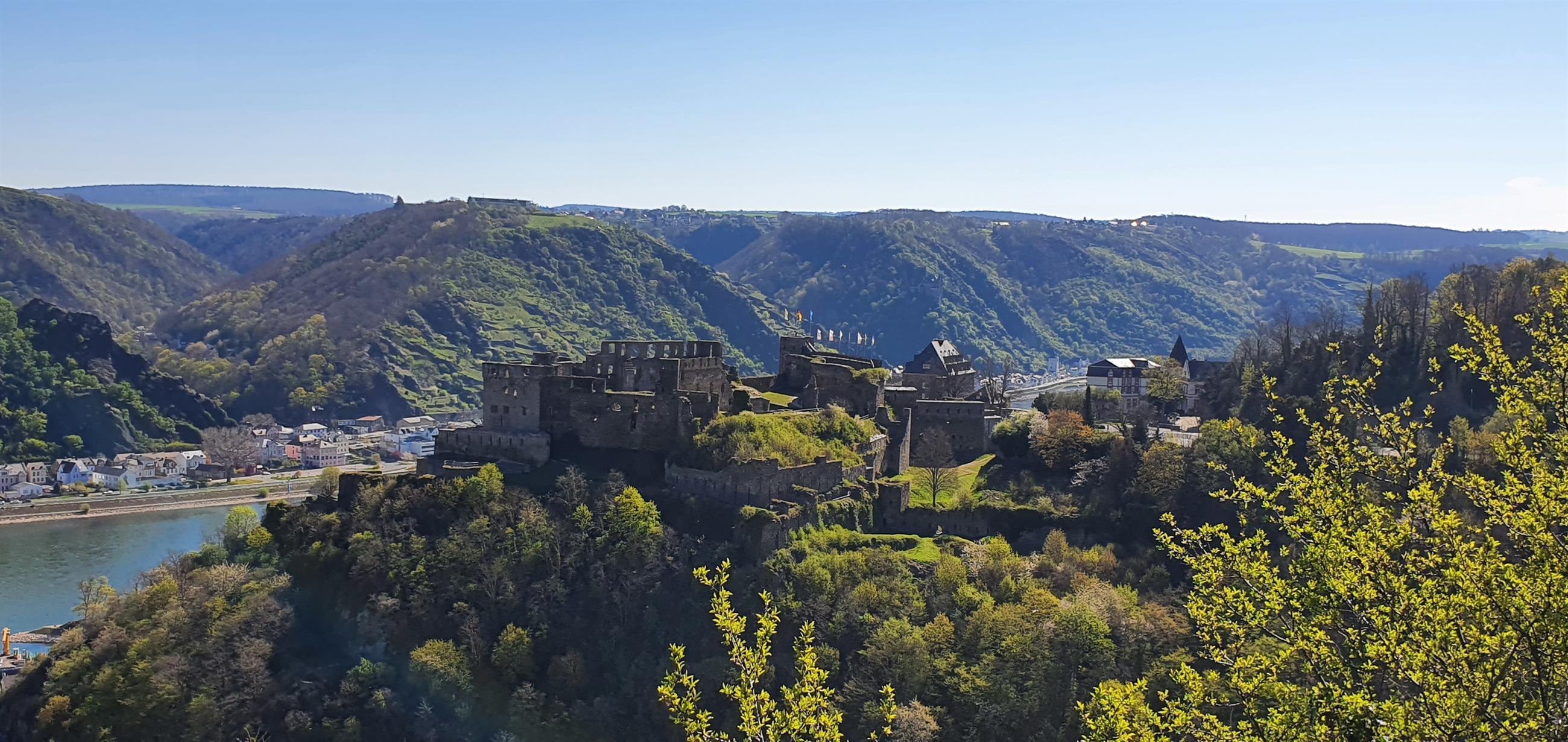 Aussichtspunkt "Rheinfelsblick" gegenüber vom Rheingoldbad in Werlau, mit toller Aussicht auf die Burg und das Mittelrheintal.