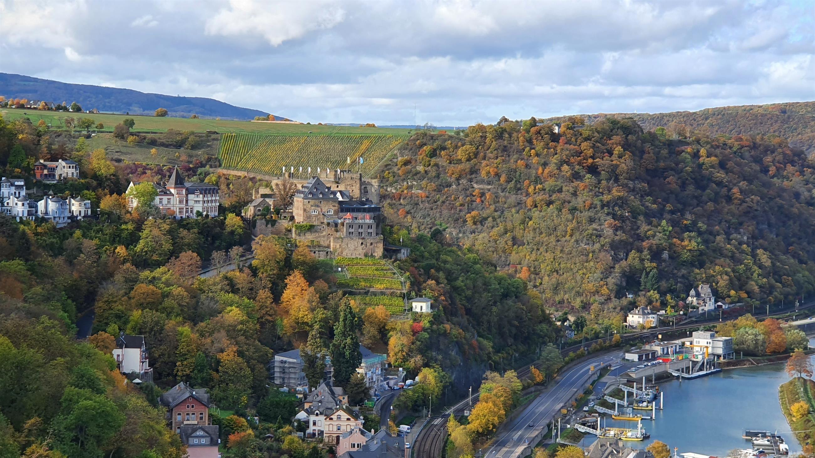 Aussichtspunkt "Wackenberg" mit Rheinblick und auf die Burgen Rheinfels und Burg Maus.