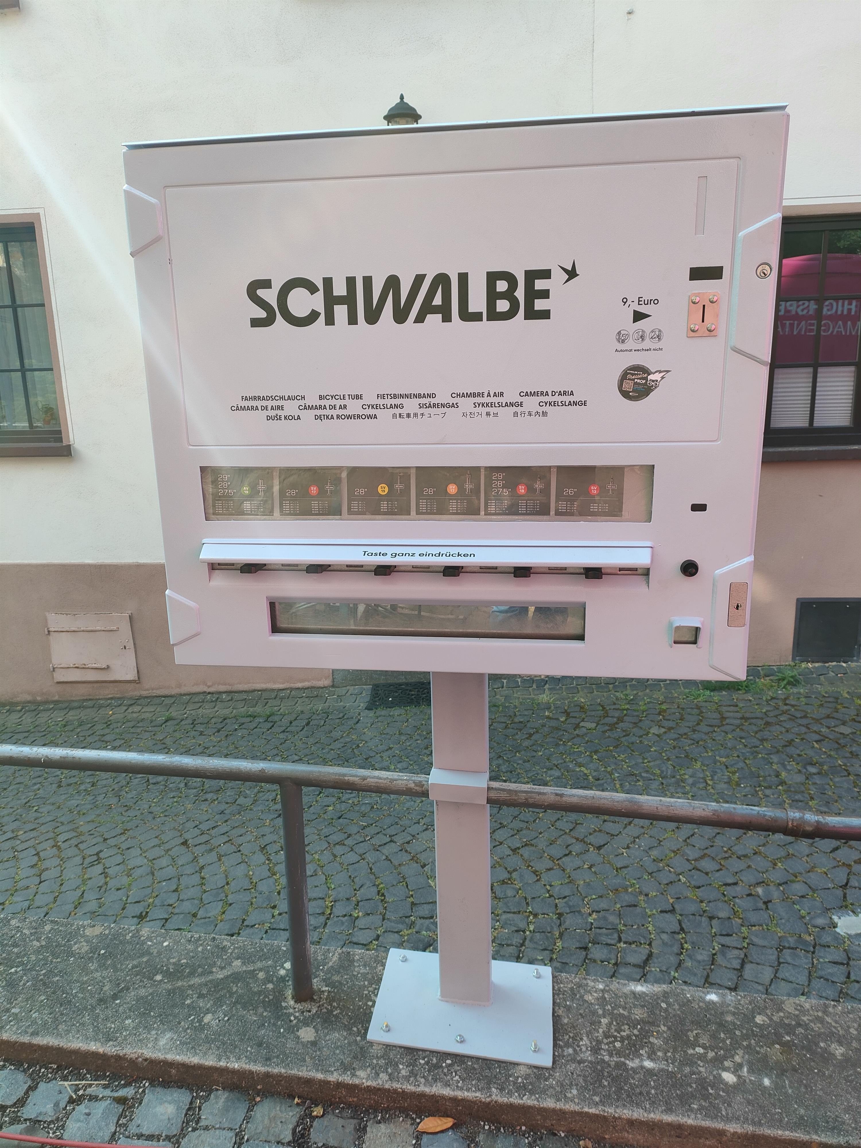 Ergänzt wird die Fahrrad-Reparaturstation um einen Schlauchautomaten, an dem Schläuche in verschiedenen Größen erworben werden können. Der Automat wird betrieben von der Firma Radsport Kipp aus Simmern, Tel. 06761-9299996.