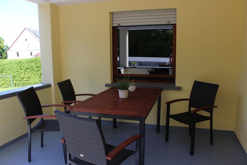 Mit ca. 65 qm bietet die Erdgeschosswohnung ausreichend Platz für 2 Personen. Sie verfügt über ein separates Schlafzimmer mit Doppelbett, einen Wohnraum mit voll ausgestatteter Küche und Schlafsofa (auf Wunsch für 2 weitere Personen nutzbar), ein Bad mit Dusche/WC, einen kleinen Flur mit Garderobe und einen überdachten Balkon (Loggia). Zum Kücheninventar zählen u.a. ein Ceran-Kochfeld, eine Spülmaschine, ein Milchaufschäumer, ein Backofen, ein Kühlschrank, ein Toaster und eine Kaffeemaschine. Zur weiteren Ausstattung gehören zudem Sat-TV, Radio und Internetzugang/ WLAN. ein Wandtresor, Bettwäsche und Handtücher werden gestellt. Handtücher werden wöchtenlich gewechselt. Ab einem Aufenthalt von mindestens 14 Tagen wird auf Wunsch die Bettwäsche gewechselt. Kinderbett und Hochstuhl können bei Bedarf zur Verfügung gestellt werden. Aufenthalte mit 1-3 Übernachtungen sind nach telefonischer Rücksprache gegen Aufpreis evtl. möglich.