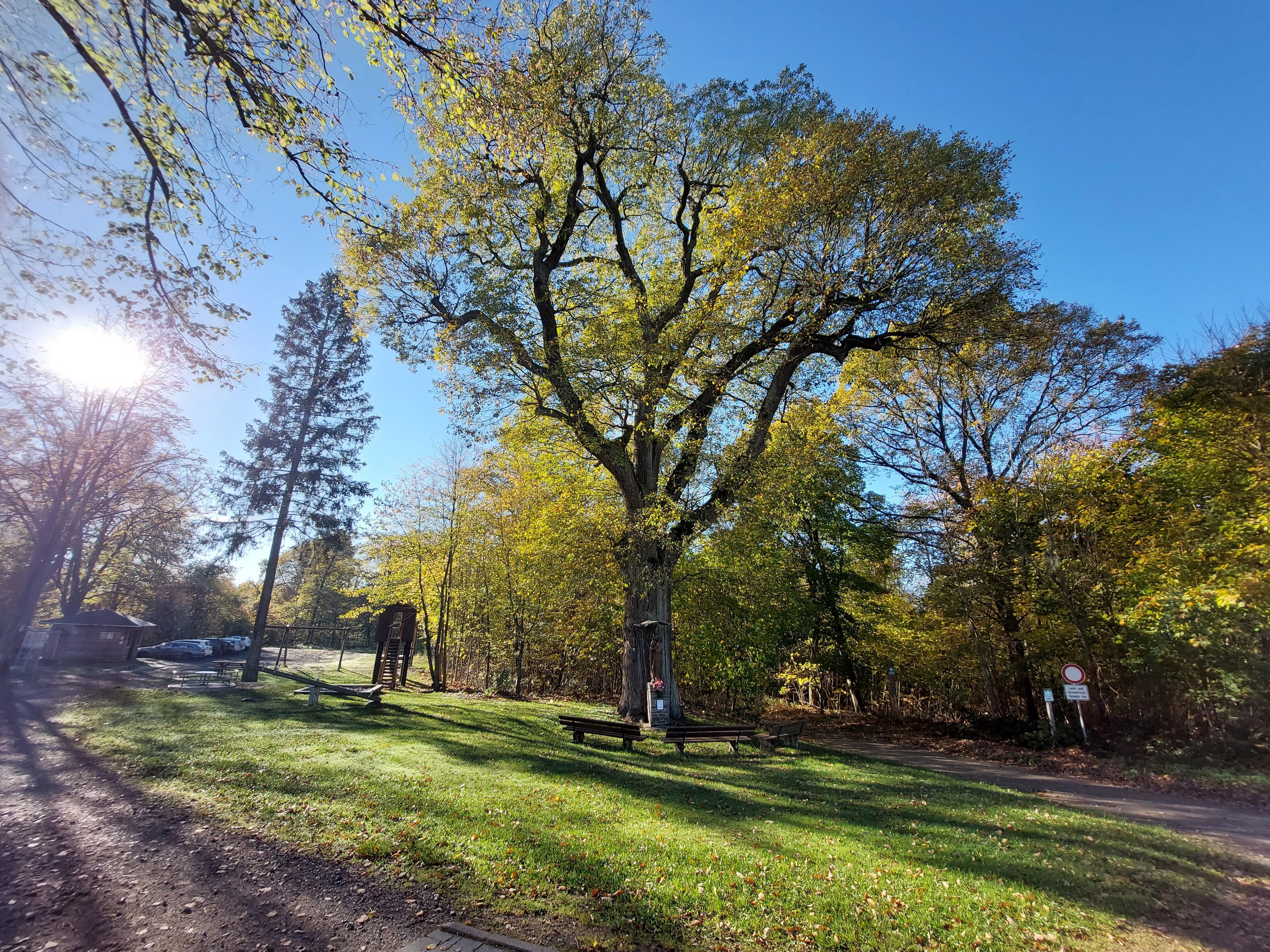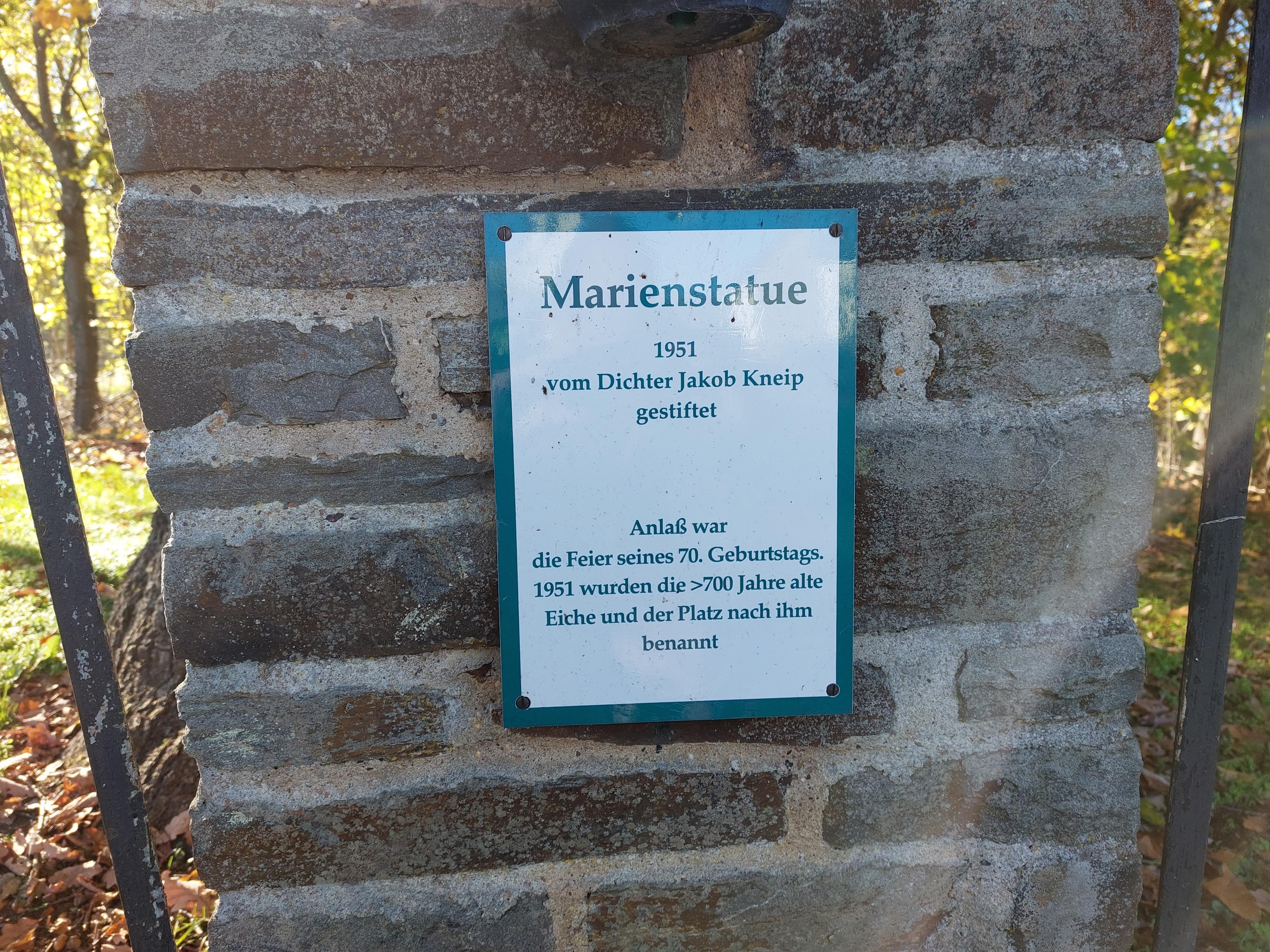 700 Jahre alte Eiche nach dem Heimatdichter Jakob Kneip benannt. Die Eiche hat einen Stammumfang von 6 m.