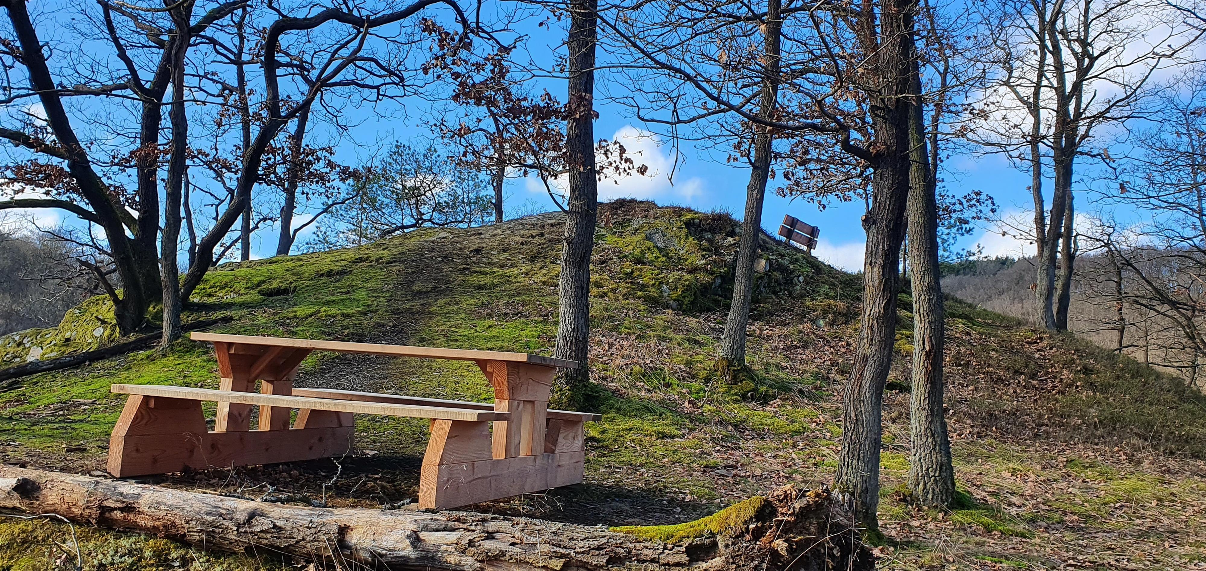 Nur einige Meter auf der anderen Seite herunter lädt ein Tisch mit Bänken zu einer Verweilpause oder einem Picknick ein.
