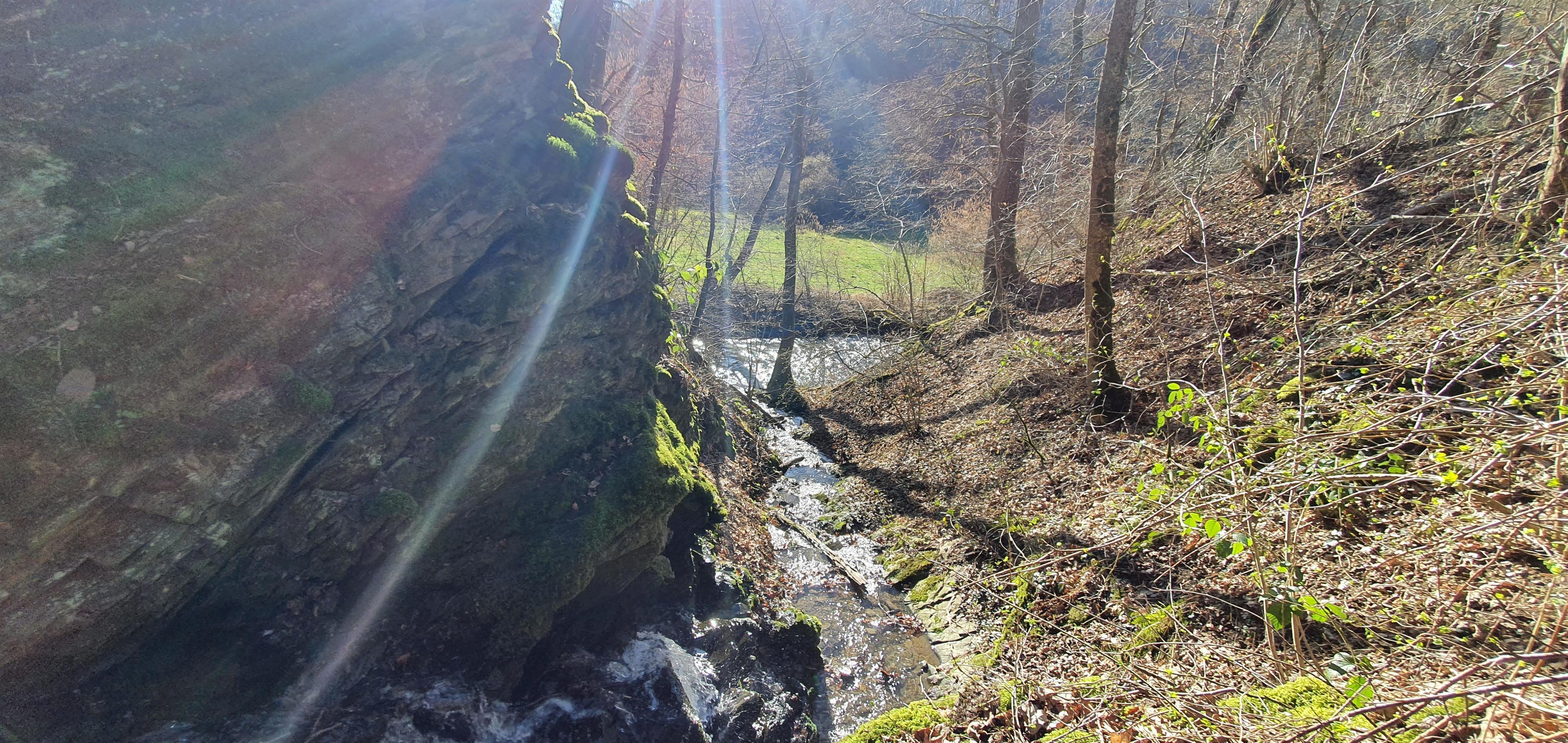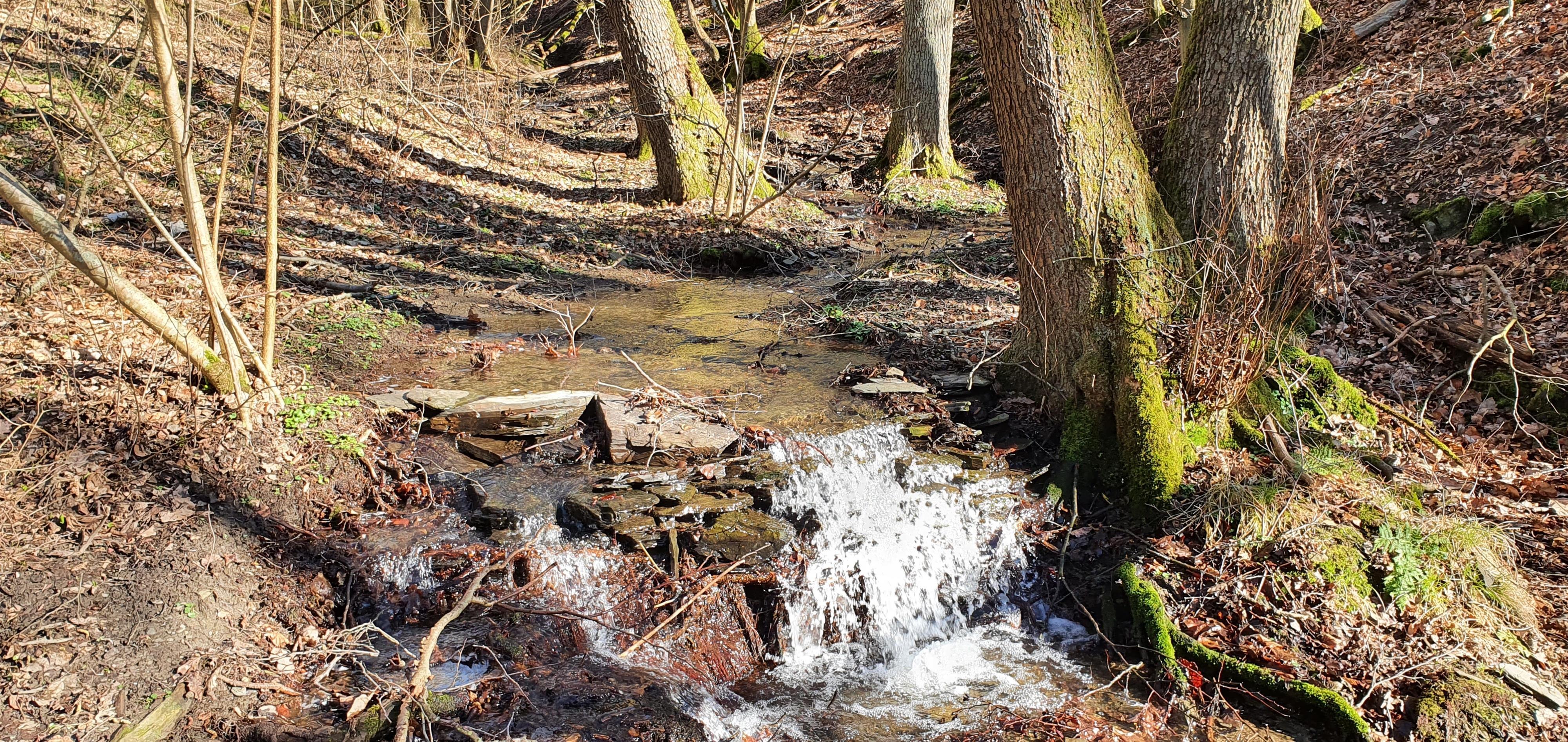 Zugegeben: Die Bezeichnung Falls ist deutlich übertrieben, aber es ist wunderbar beruhigend, auf der Bank oberhalb der kleinen Wasserfälle zu sitzen und dem Plätschern des Wassers zuzuhören, bevor es im Baybach verschwindet.