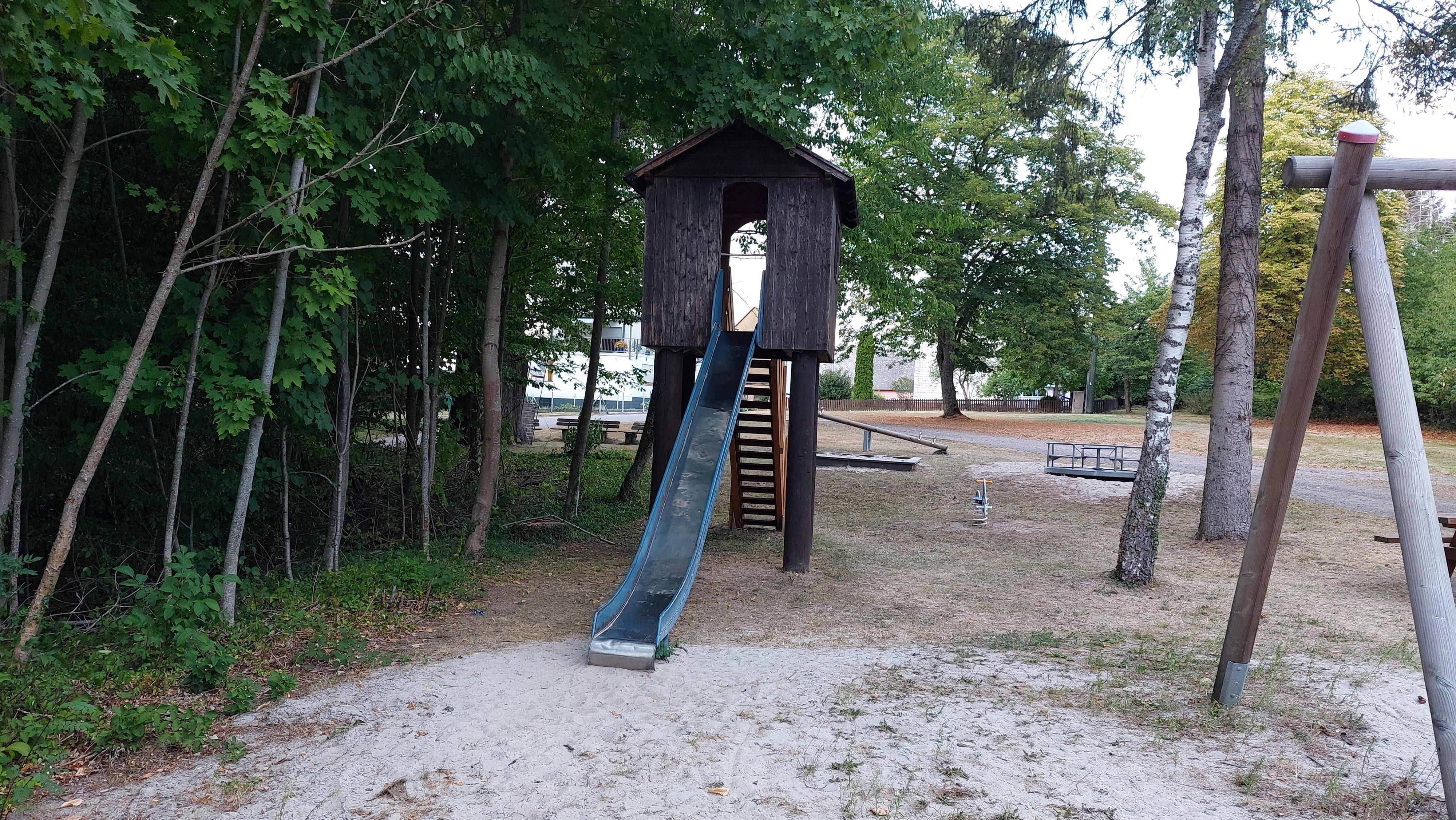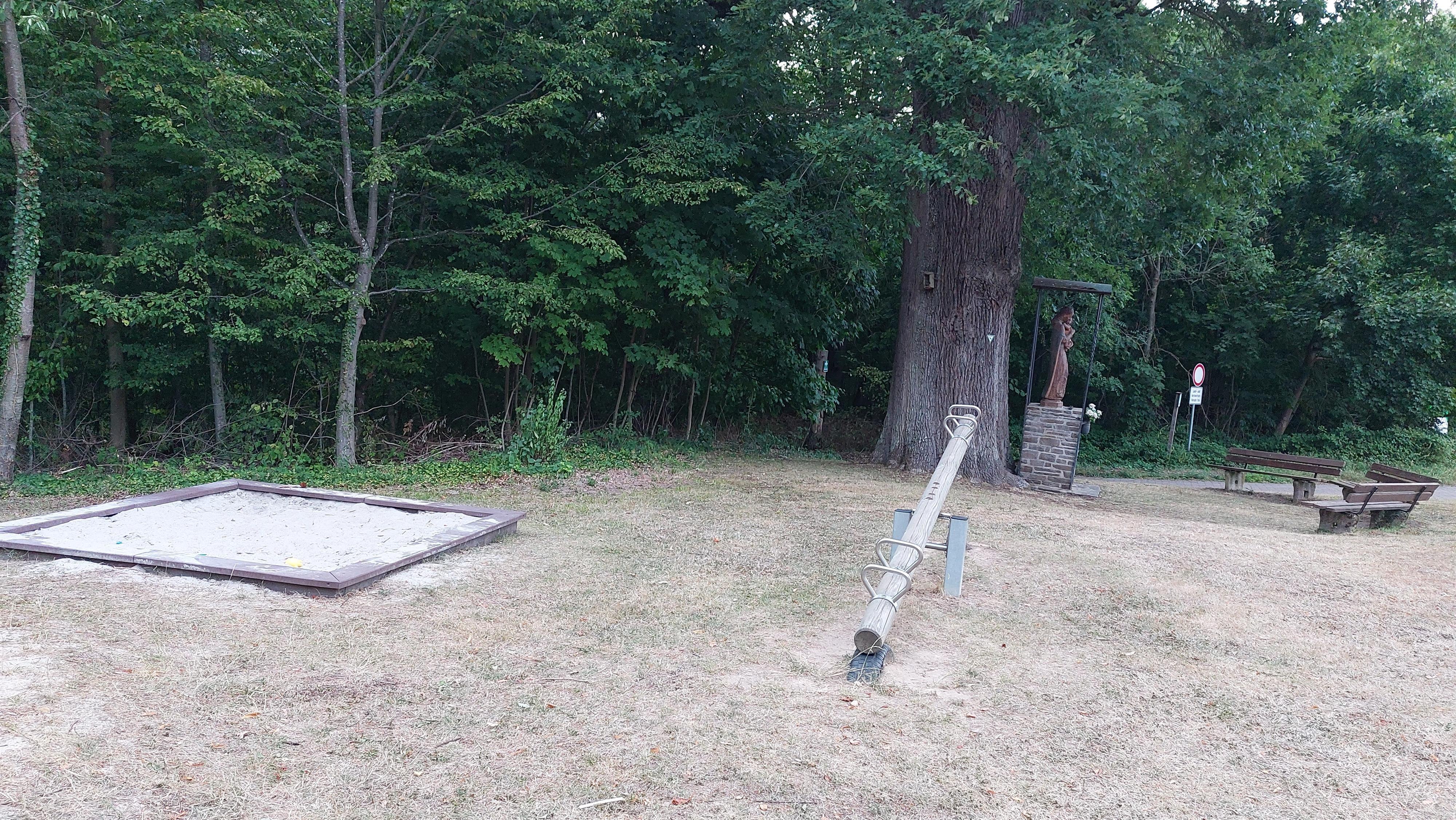 Ruhig gelegener Spielplatz, direkt am Waldrand an der Jakob-Kneip-Eiche mit Sandkasten, Karusel und Rutsche sowie einem Bienenhotel und einer Picknick- und Ruhebank. Starpunkt der Traumschleife "Murscher-Eselsche" und des Traumschleifchens "Murscher-Aussichten".