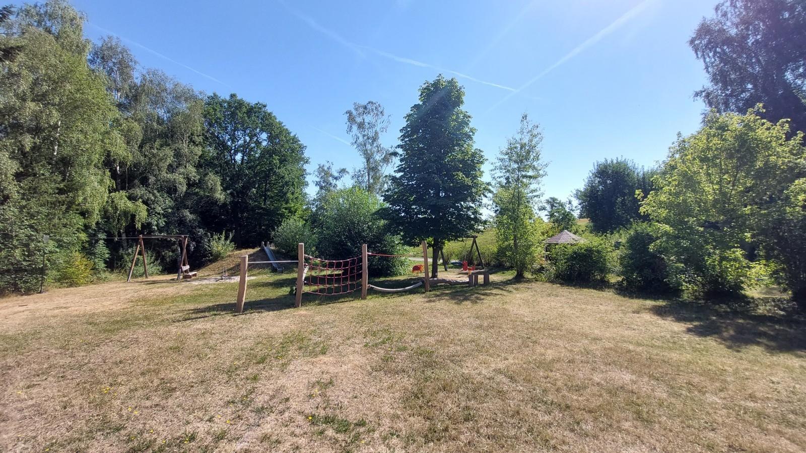 Abseits der Hauptstrasse, ruhig gelegener Kinderspielplatz hinter dem Gemeindehaus direkt an einem kleinen Wäldchen. Viele Spielgeräte und eine große Rasenfläsche laden zum Verweilen ein.