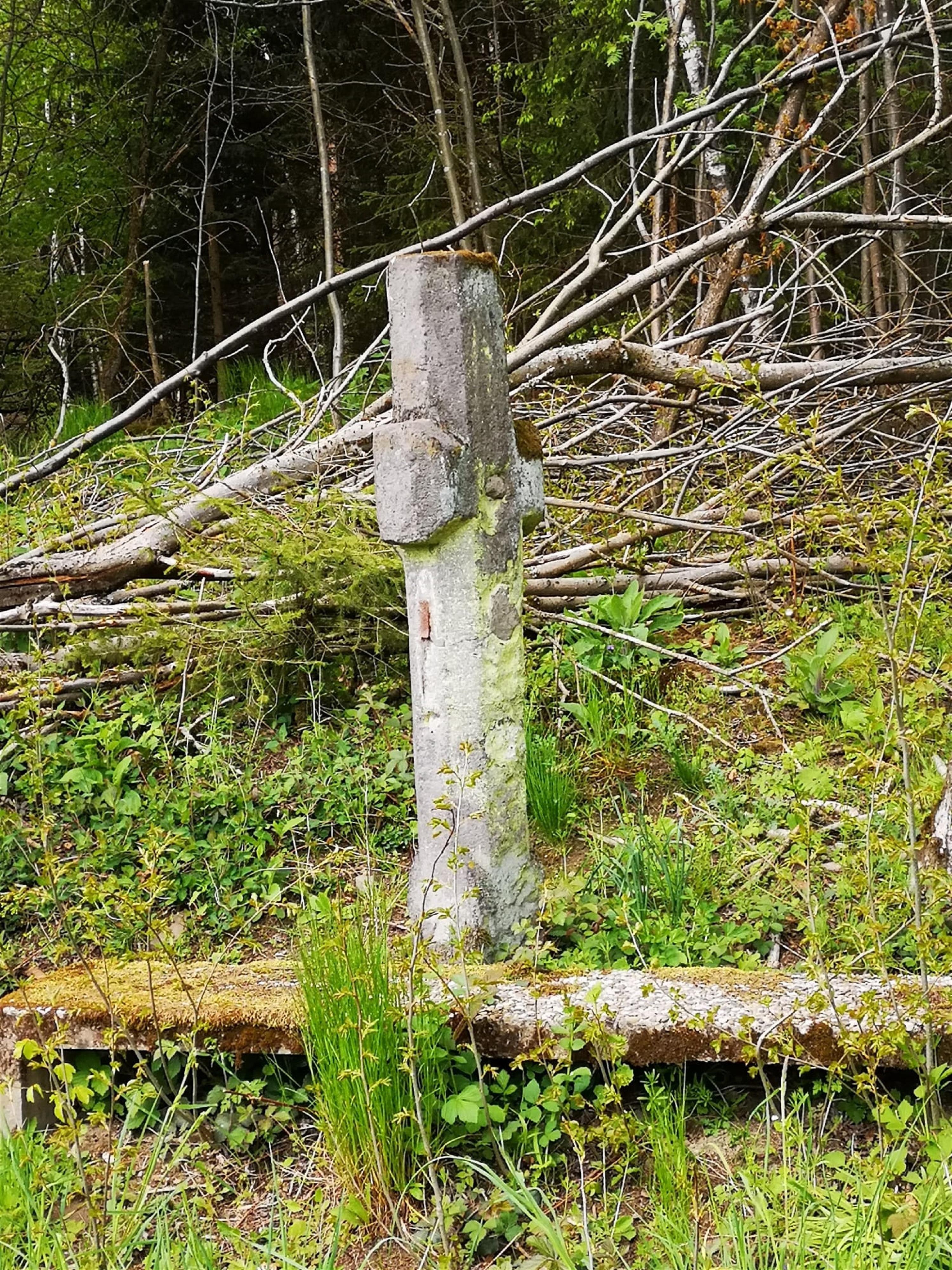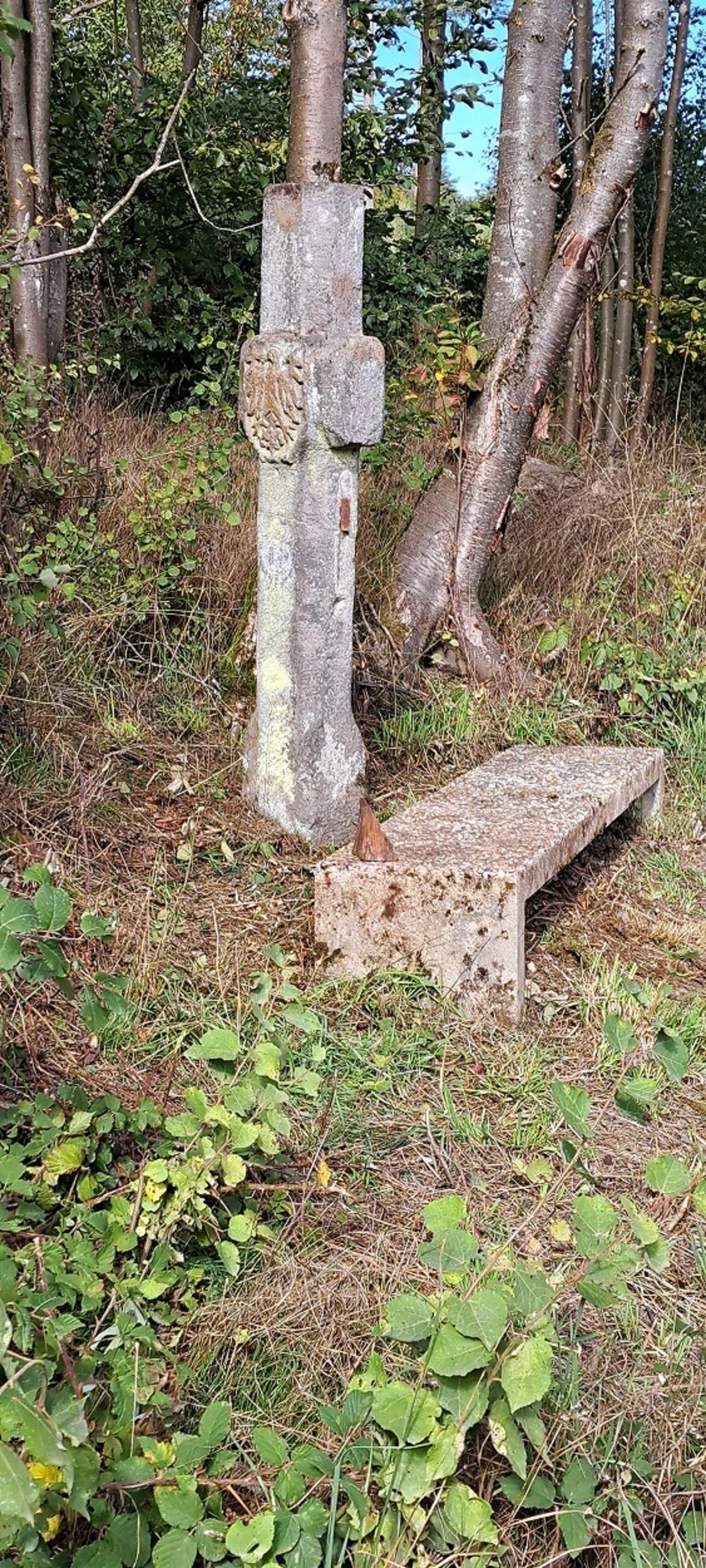 Altes Steinkreuz.....Folgende Sage wurde zum Männchen berichtet: Wenn man um Mitternacht dort vorbei geht würden alle Knöpfe von den Kleidern, Hosen, Hemden, Jacken etc. abfallen.