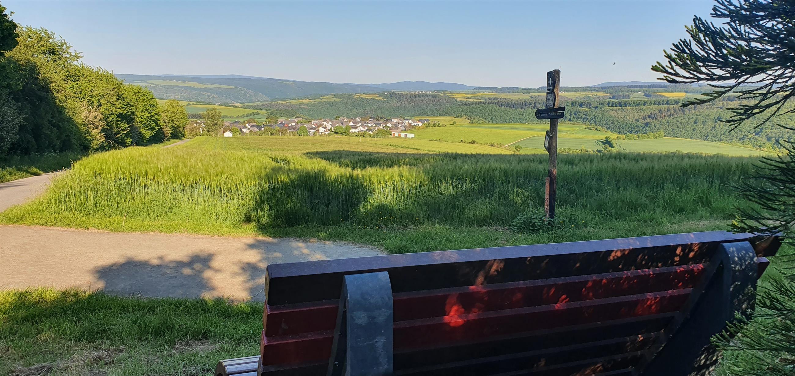 Traumhafter Aussichtspunkt in Damscheid, mit Blick bis in den Taunus am Waldlehrpfad.