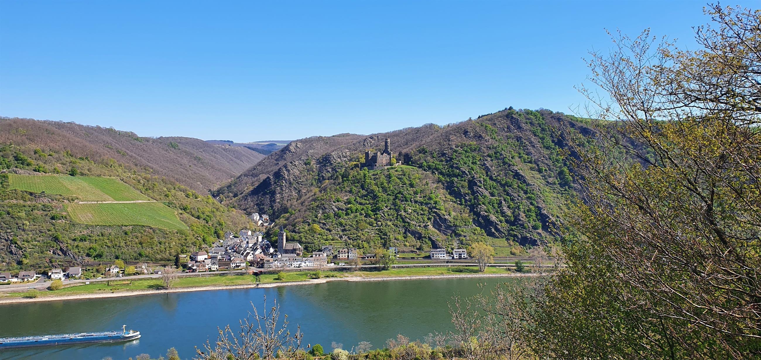 Viewpoint near Werlau with rest area and barbecue hut and view of Maus Castle.