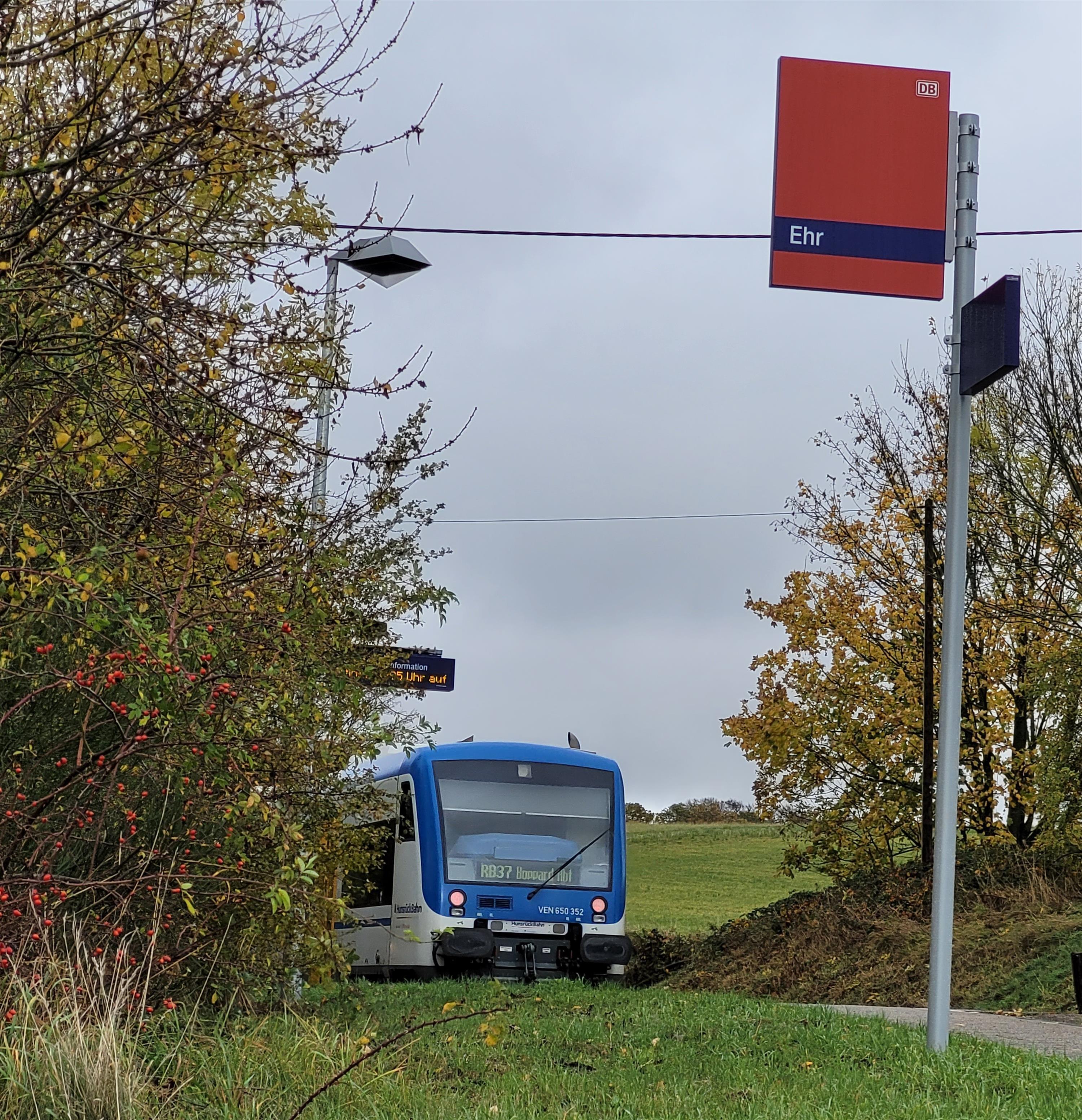 00:00 - 23:59Bahnhof Ehr 56283 Halsenbach-Ehr CallMapYou are here:HomepageBahnhof Ehr Railroad station in Ehr Railroad station in Halsenbach district Ehr. Stop of the Hunsrückbahn