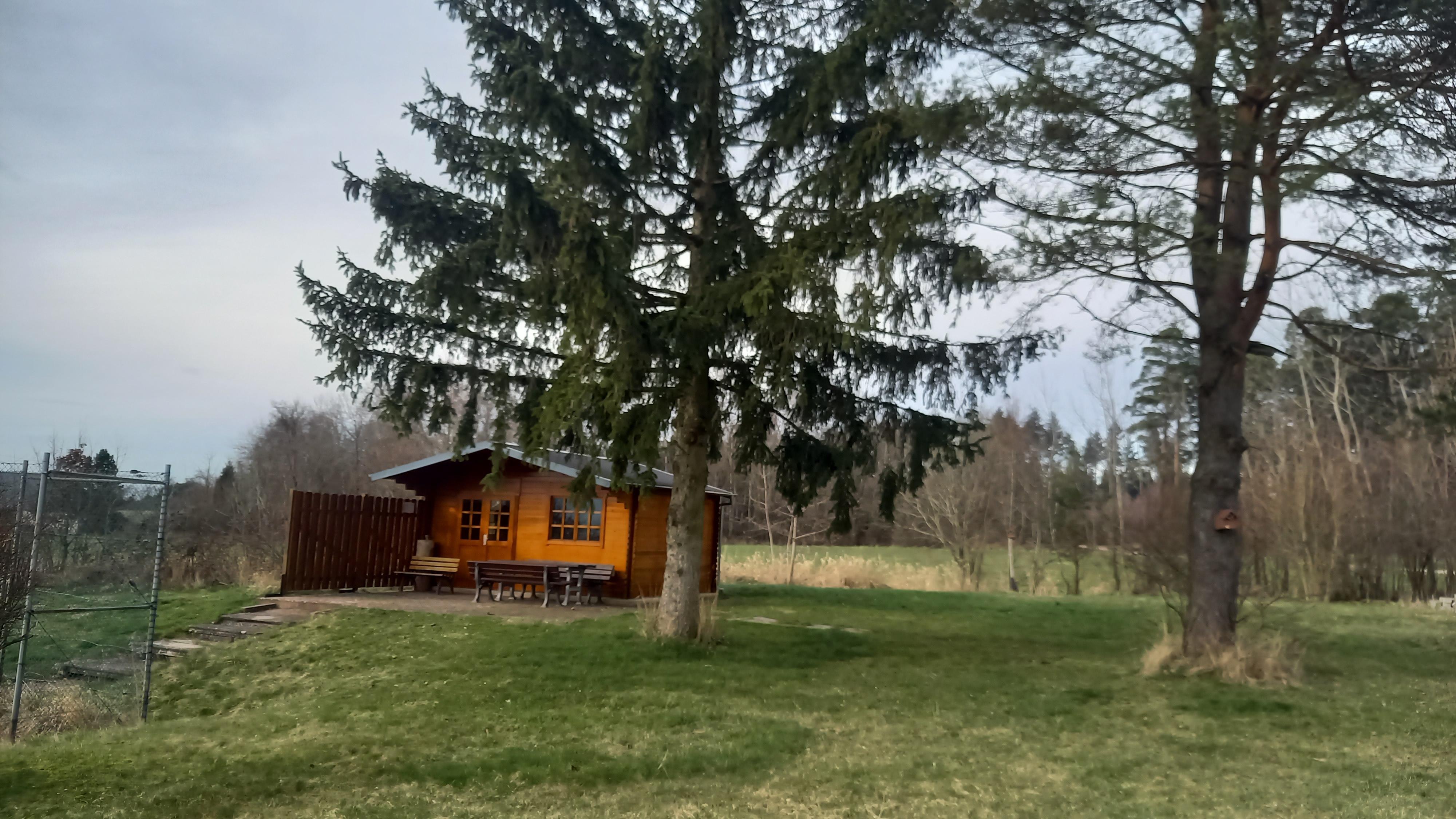 Beautiful hut with barbecue area above the community center right next to the tennis court in Maisborn.