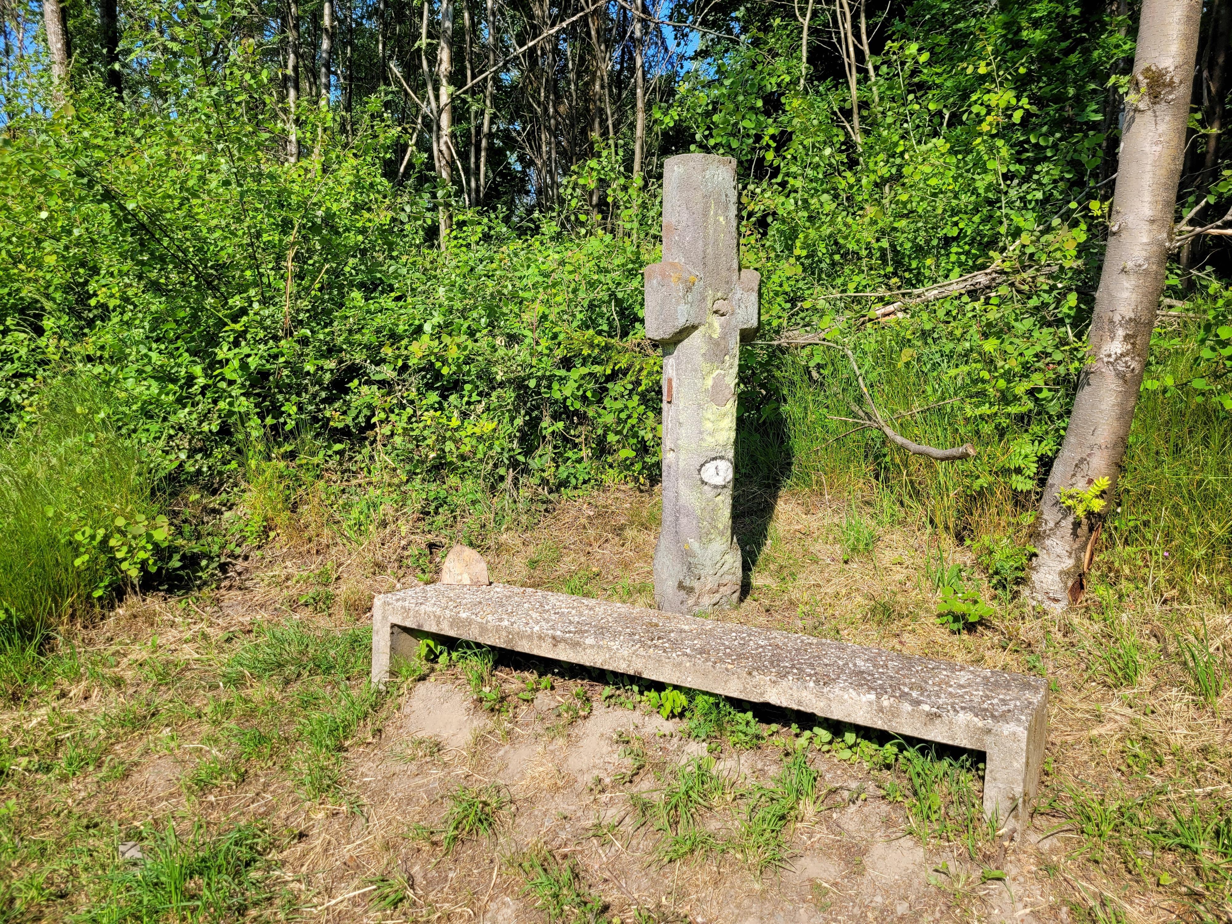 THE LITTLE STONE MAN The legendary little stone man is probably a very old stone road or border cross. Age, origin, material - all these things have long been forgotten. None of the older residents of Karbach can tell us anything about it: "Where does it come from?" "How old is it?" "Who put it up?" "What is the significance of the eagle?" "What path or boundary does it show us?" "Why is there metal on the sides?" "Was it perhaps a gravestone?" All of these questions remain unanswered. Only the legends and scary stories, they are preserved. Often you hear the spooky legend that if you walk by here, a ghost in the form of a stone man will jump on your back and demand to be taken home. In another story it is said that if you pass by there at midnight, all the buttons will fall off your from your clothes, pants, shirts and jackets. But you need not be afraid now, the only the only true story that Horst Bender of the Bender could tell us about the little stone man, is as follows: In former times the children of Karbach collected almost daily with their school teacher Mr. Pollesche. They made a fun of it, with small small sticks and branches to hit the little stone man. with small sticks and branches. Through the many attempts, the The many attempts, the effort of throwing and the romping around caused one or the other of the rascals to lose many a button from his shirt. At that time there was a lot of trouble at home, because they tried to hit the stone man again and lost the buttons. Thus we have then probably the origin of the one story. Who knows more about the stone man, can write us gladly under: rheinhoehentour.karbach@gmail.com.