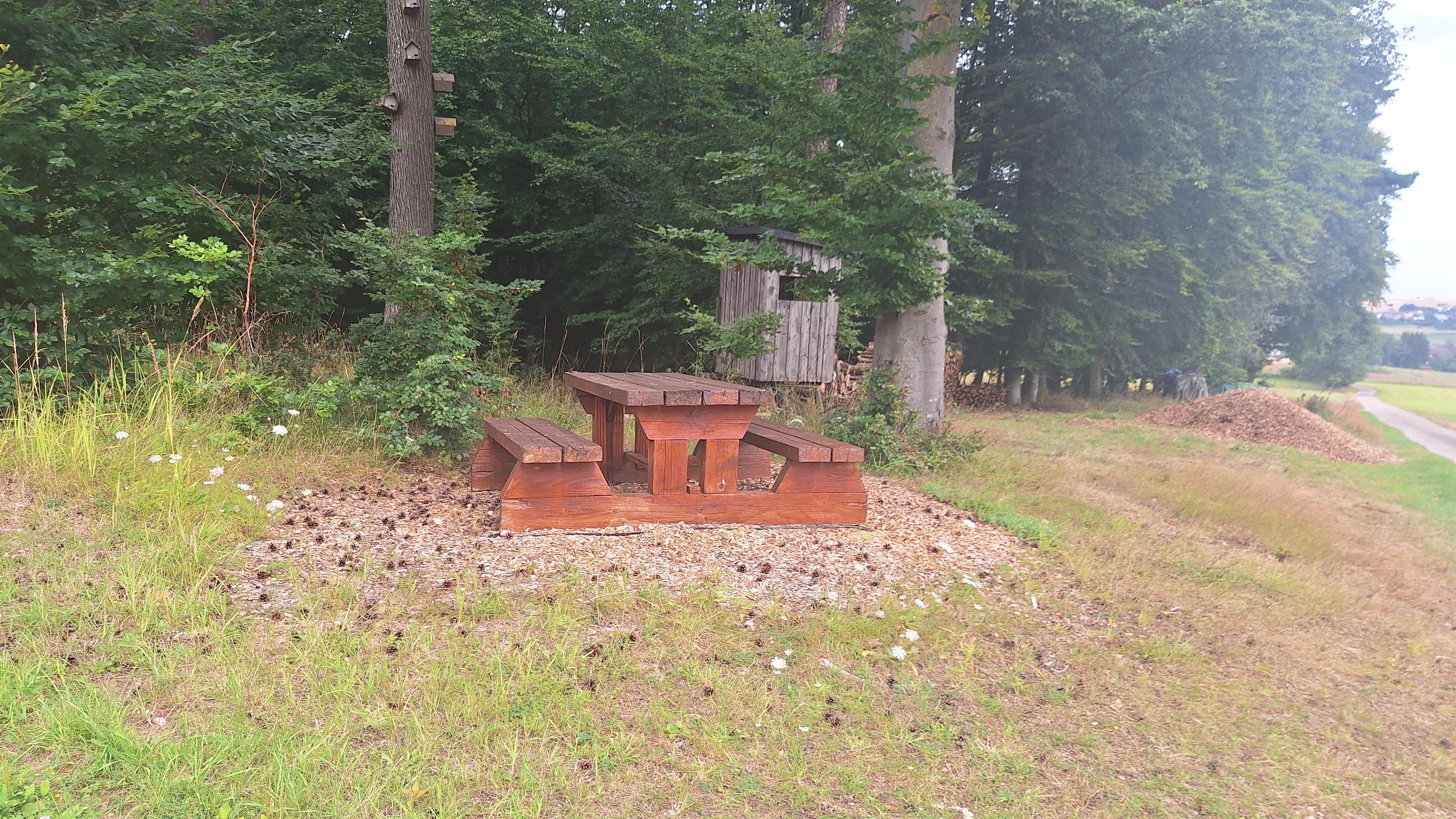 "Catch your breath" with a picnic bench on the Grenzgängerweg and beautiful views in Birkheim.