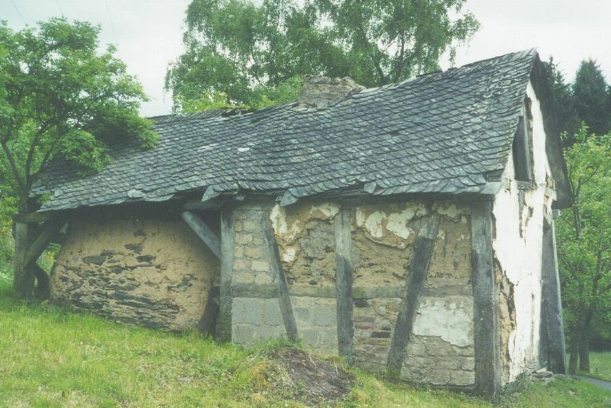 De Schwaller Molen Vanaf de Layenmühle lopen we nog maar een paar minuten, daar verschijnt de Schwaller Mühle, ook wel Jakobs- of Müllerjuppsmühle genoemd, voor ons. Omdat de molens vroeger naar hun eigenaars werden genoemd, veranderden de namen vaak. Bij Schwaller Mühle, trekt een oud, half vervallen huisje onze aandacht. Bij nadere inspectie ontdekken we dat het een voormalige bakkerij moet zijn geweest. De ronde bakstenen oven is nog duidelijk zichtbaar, en een brutale blik in het niet afgesloten interieur bevestigt onze veronderstelling. Hoeveel generaties zullen hier hun dagelijks brood gebakken hebben? (Het bakhuis is inmiddels gerenoveerd en kan nu weer gebruikt worden voor het bakken van brood) In een belastingregister aan het begin van de 18e eeuw wordt ene Anton Bunsch genoemd als Schwaller molenaar. Kort na 1800 kwam ene Jacob Nick in de molen. Hij en zijn nakomelingen bleven tot op heden in het bezit van de molen. Hermann Nick was de laatste molenaar in de hele vallei en stopte pas in 1964 met malen. In het gedeelte waar we tot nu toe gelopen hebben, presenteert het Baybachtal zich als een zacht, breed en vlak weidedal, maar onder de Schwaller molen komen de beboste hellingen dicht bij de beek. En dan zien we verschillende gebouwen voor ons, waar de eerste blik zegt: dit zijn geen molens, dit zijn gebouwen van de moderne tijd. En als een contrast met het bakkerijtje dat we eerder bewonderden als een overblijfsel uit vroeger tijden, toont de rioolwaterzuiveringsinstallatie Oberes Baybachtal de gevolgen van de huidige welvarende maatschappij. In deze zuiveringsinstallatie wordt het afvalwater van 14 omliggende dorpen opgevangen en gezuiverd. Natuurlijk willen we weten, doet de plant recht aan deze taak? Daar lijkt het wel op, want het water dat uit de fabriek stroomt en in de Baybach terechtkomt, is onberispelijk qua helderheid en geur. Het wandelpad zigzagt langs de zuiveringsinstallatie en over een betonnen brug. Wij houden ons altijd aan de ronde borden met de duidelijk zichtbare "B" (voor Baybach) en kunnen dus niet de juiste weg missen. Direct achter de zuiveringsinstallatie, waar de beek uit het "Emmelshäuser Heilbrünnchen" ontspringt, trekt een indrukwekkend natuurmonument onze aandacht. Het is de zogenaamde "Dreispitz", een dennenboom die meer dan 100 jaar oud is. Op de hoogte van een man heeft hij zich vertakt in drie scheuten die bijna 30 meter omhoog schieten. U staat met ontzag voor dit natuurwonder, net zoals u dat doet voor een bossige en knoestige beuk van 150 jaar oud, die even later onmiskenbaar op het pad staat. Uittreksel uit het boek "von Mühle zu Mühle" (van molen tot molen), een wandeling door het Baybachtal, verkrijgbaar voor 9,00 euro bij de Toeristeninformatie Emmelshausen.