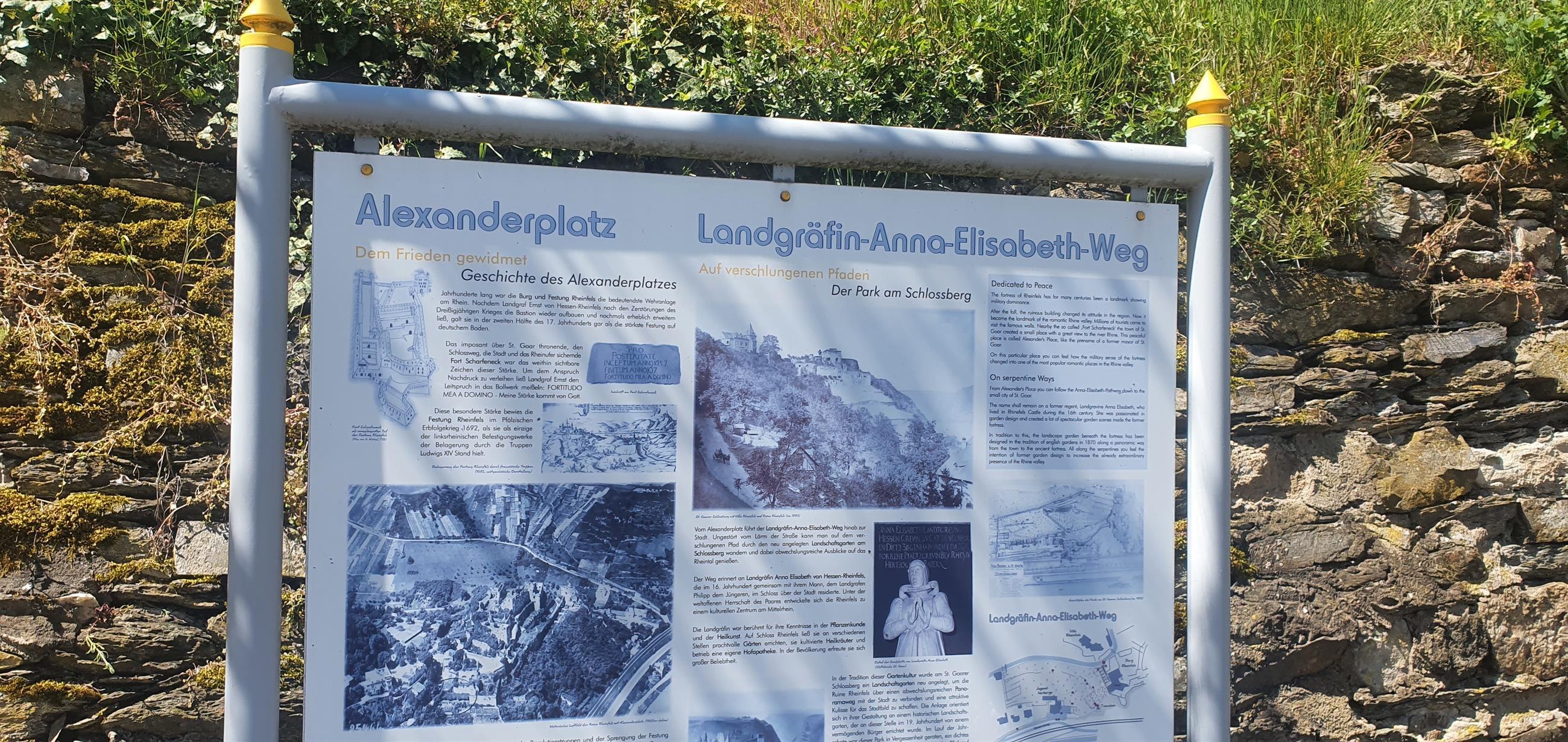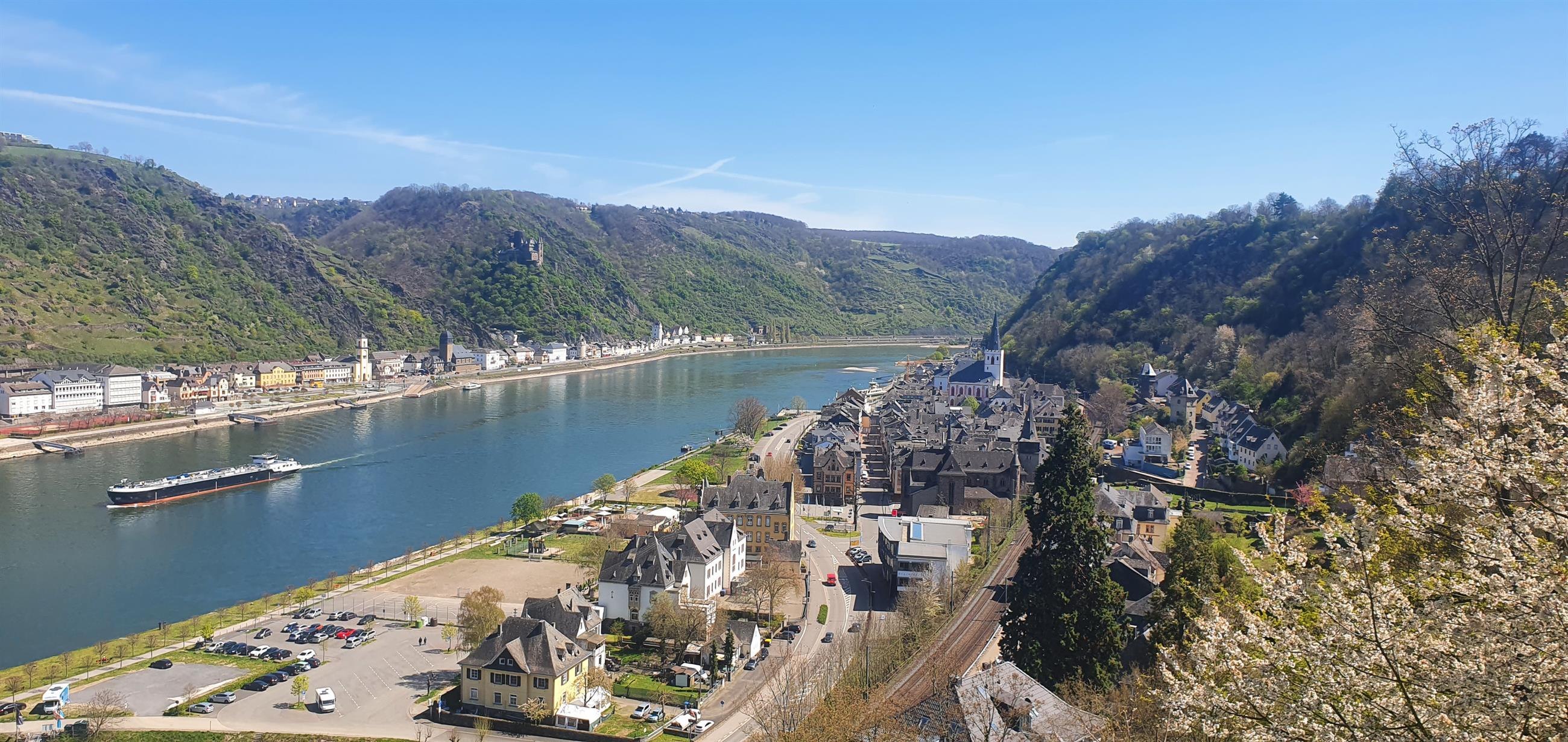 Prachtig uitzichtpunt direct onder het kasteel Rheinfels met William Turner-site en op de Landgravine Anna-Elisabeth-Weg.