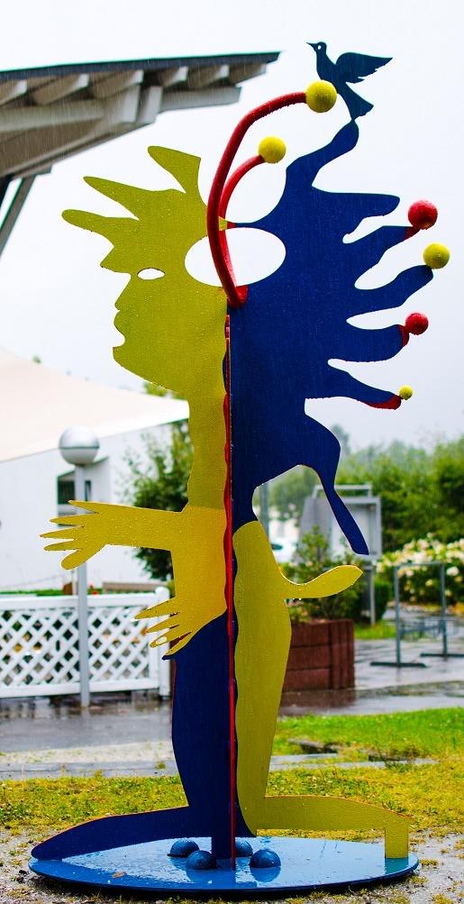 De vier platen zijn aan elkaar gelast en wijzen zo in alle richtingen. Luister naar de kleuren, misschien voel je hoe het verder gaat.