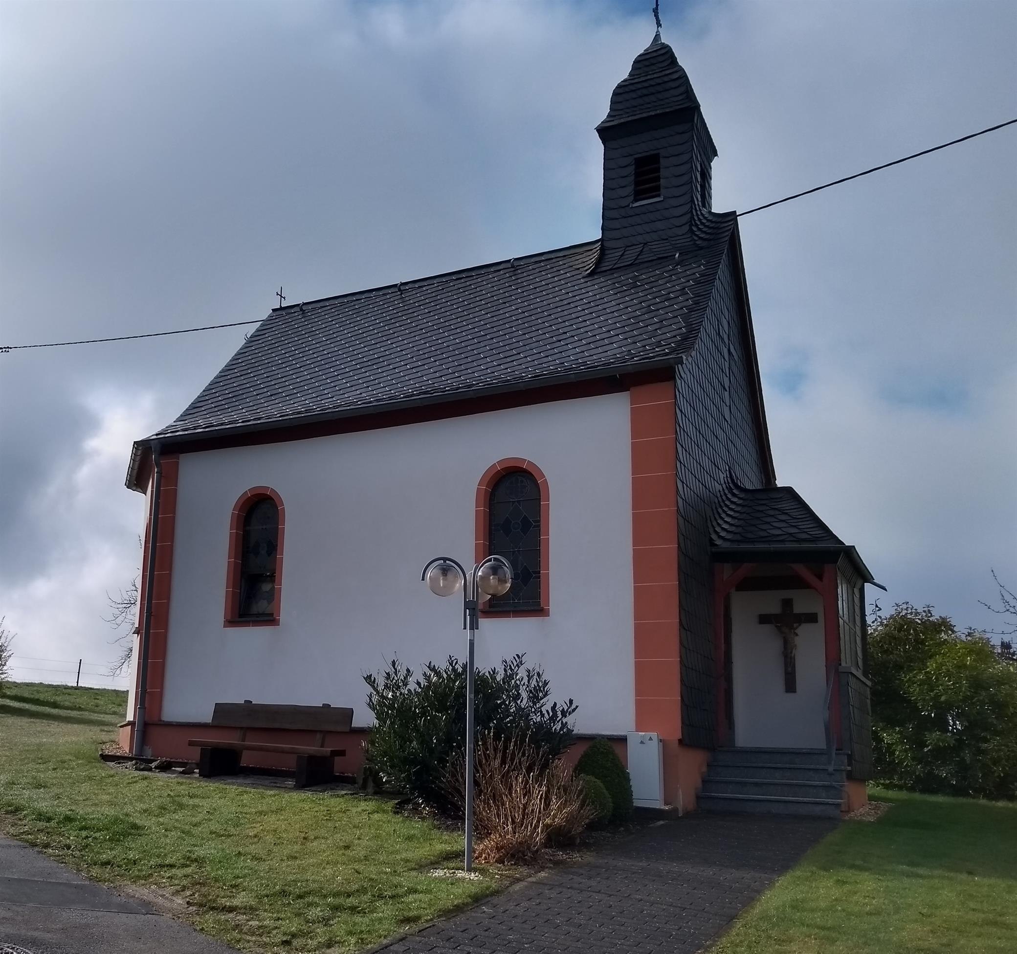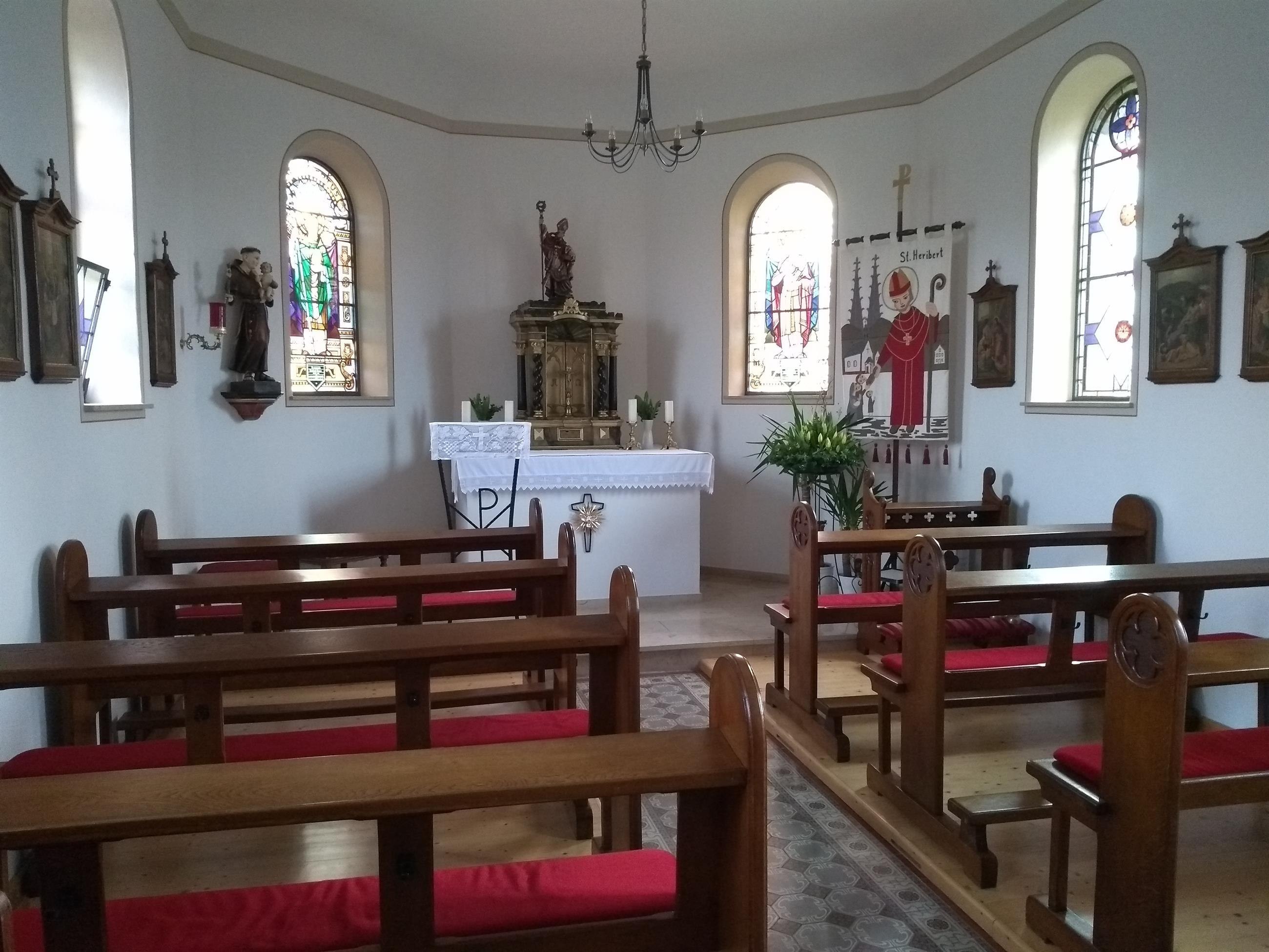 De goed verzorgde, kleine kapel op de Mermicherhof nodigt uit voor een pauze. De kapel was gewijd aan St. Heribert.