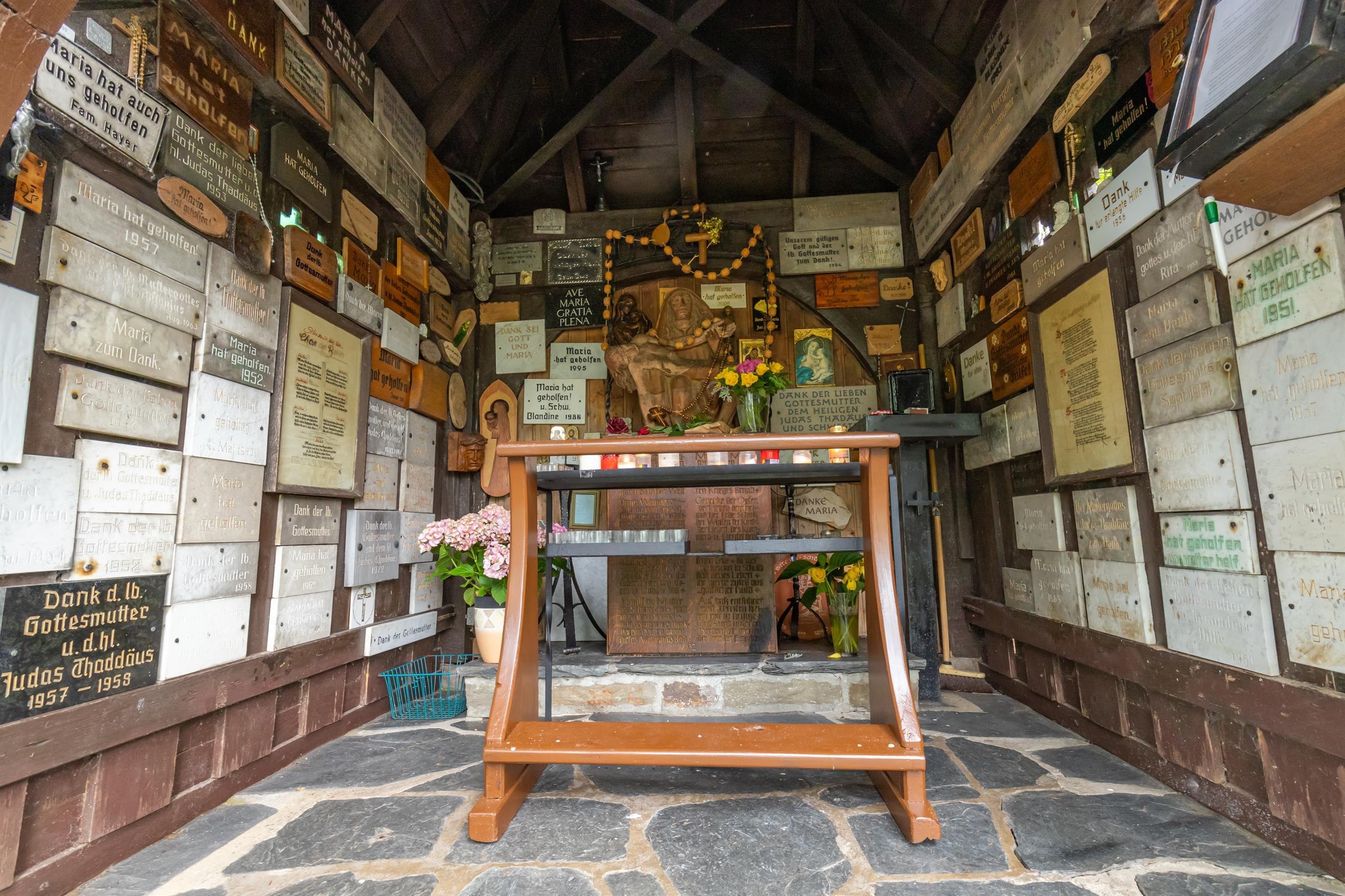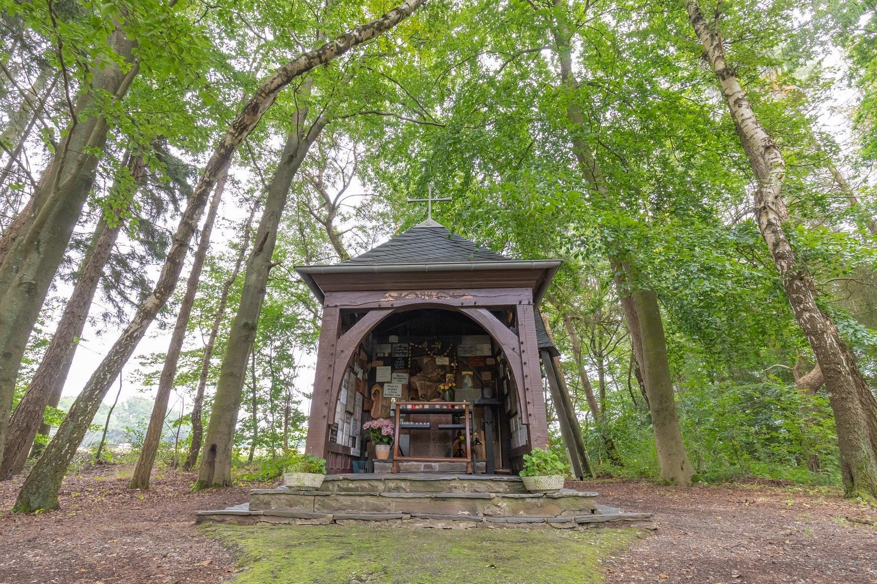 De kapel van de bedroefde Moeder Gods op de L211 werd gebouwd in 1946. Op initiatief van Peter Malmen hielpen verschillende families uit Koblenz de bouw te realiseren uit dankbaarheid voor hun redding uit grote ontberingen tijdens de oorlog. Plaatselijke ambachtslieden voerden de bouw uit op het terrein van de familie Ritt. De Piëta is het werk van Eugen Keller en werd samen met de kapel ingewijd op 29 juni 1946 door Deken Alles. Het rust op een houten voetstuk waarop een gedicht is vereeuwigd dat getuigt van de ontberingen van de Tweede Wereldoorlog 1939-1945. Vertaald met www.DeepL.com/Translator (gratis versie)