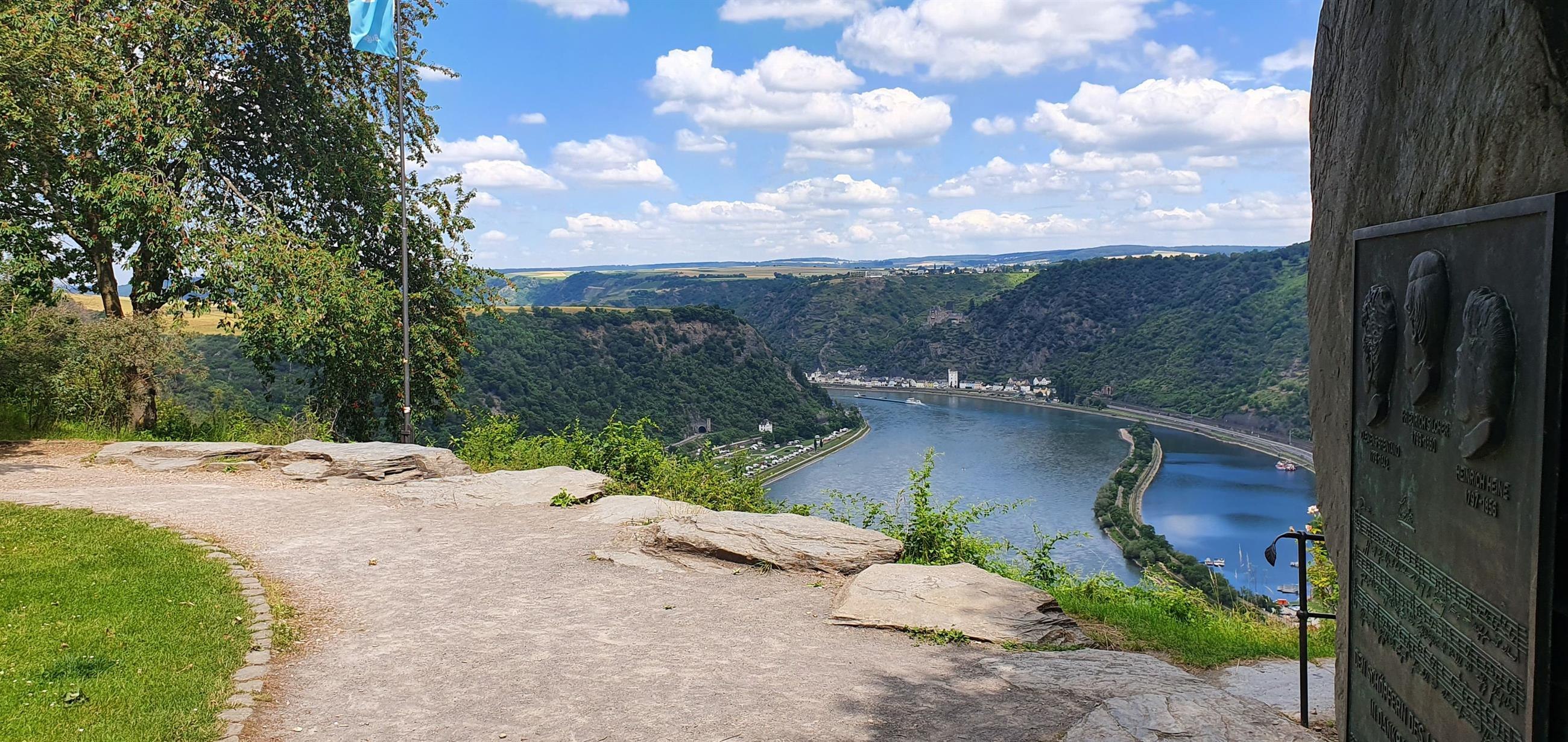 Vanaf het Urbar uitkijkpunt "Maria Ruh" kunt u genieten van een onvergetelijk uitzicht op de legendarische Loreley-rots aan de overkant, tot diep in het smalste deel van de Rijn en verder stroomafwaarts tot aan de kastelen Katz en Maus. Het hele gebied van het uitkijkpunt werd in 2005 omgevormd tot een landschapspark, zodat de bezoekers nu worden geconfronteerd met een geheel dat harmonieus opgaat in de natuur en uitnodigt om te vertoeven, te genieten en te dromen. In Maria Ruh is een monument gewijd aan de vaders van het Loreley-lied: Clemens Brentano, Heinrich Heine en Friedrich Silcher. Deze drie lokaliseerden het romantische verlangen in de 19e eeuw en kenden het een tastbare plaats toe. Clemens Brentano schiep met zijn ballade "Lore Lay" een figuur uit de wereldliteratuur, Heinrich Heine gaf met zijn verzen de figuur van de ongelukkige Undine haar definitieve vorm en Friedrich Silcher vond de gevoelige en volksliedachtige melodie voor dit lied. Er is veel gespeculeerd over de naam van de plaats, Maria Ruh. Waarschijnlijk is de naam Maria Ruh afgeleid van de rustige kant van de Rijn. Vooral op deze zeer gevaarlijke kilometer van de Rijn, waar het gevaar op de loer lag op de tegenoverliggende rots in de vorm van de verleidelijke Loreley, was (en is) de beschermende invloed van de heilige Maria, de beschermheilige van de schippers, enorm belangrijk. Het uitkijkpunt is dus een uitdrukking van deze spannende polariteit tussen de twee vrouwenfiguren, die enerzijds de dreigende oever (Loreley) en anderzijds de kalme oever (Maria Ruh) symboliseren. Vertaald met www.DeepL.com/Translator (gratis versie)