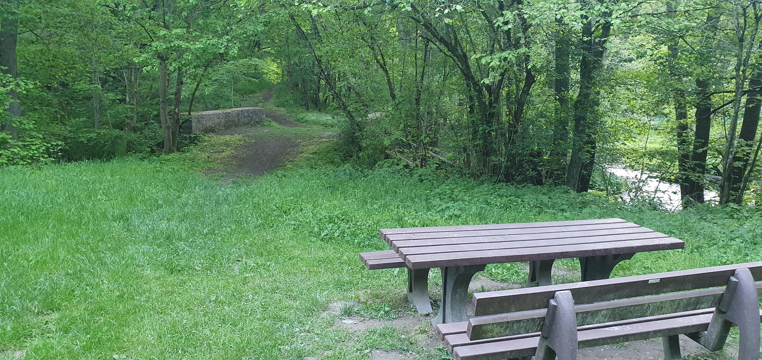 Picknickbank bij de Roskerbrug op de Saar-Hunsrück-Klettersteig