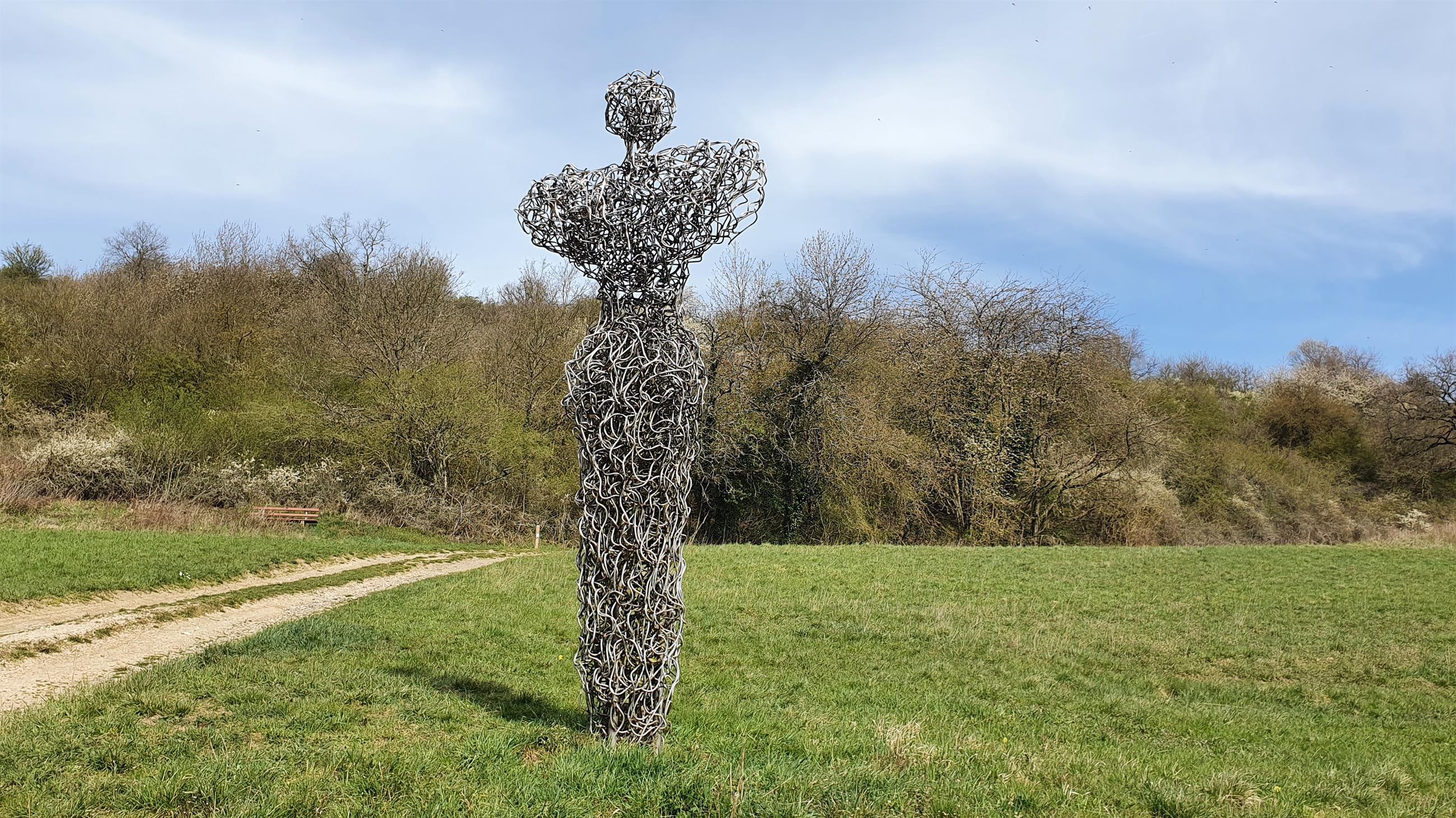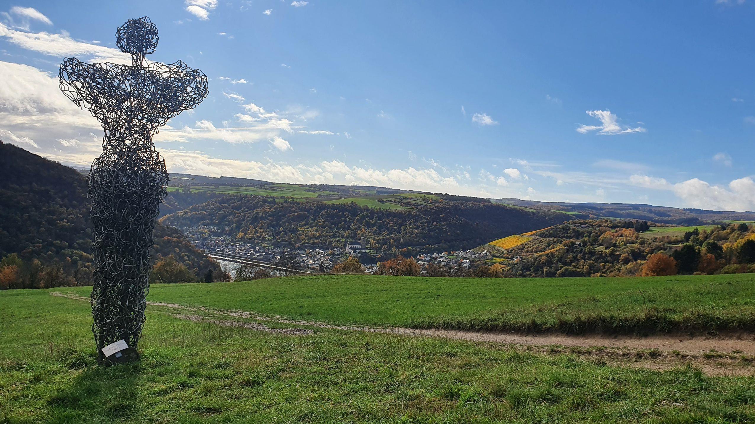 De figuur werd gemaakt van vele honderden roestvrij stalen staven, die werden gebogen en aan elkaar gelast om het figuratieve beeldhouwwerk te vormen. Het uiterlijk van de roestvrij stalen sculptuur verandert voortdurend door het licht van de zon, omdat het licht voortdurend opnieuw wordt weerkaatst. Dit was een belangrijke reden voor de keuze van roestvrij staal als materiaal. De figuur moet de rust uitdrukken die de wandelaar ervaart als hij ernaast staat, zijn blik laat dwalen over het Rijndal en de stad Oberwesel, en zich ervan bewust wordt dat dit landschap in de loop der eeuwen niet wezenlijk is veranderd. Tegelijkertijd herinnert het beeldhouwwerk ook aan het ijzeren harnas van de ridders en getuigt zo van een deel van de middeleeuwse geschiedenis van het Rijndal.