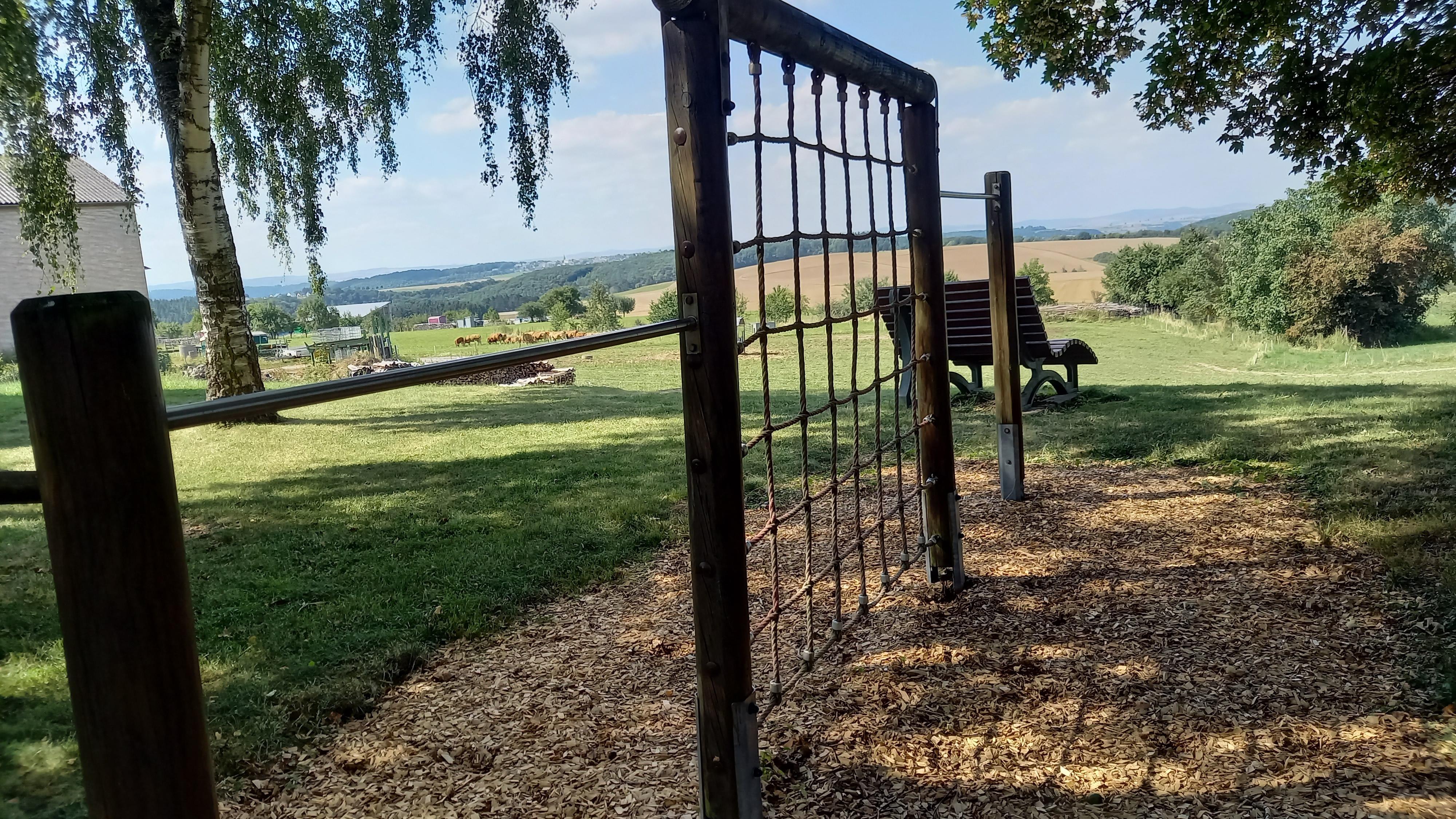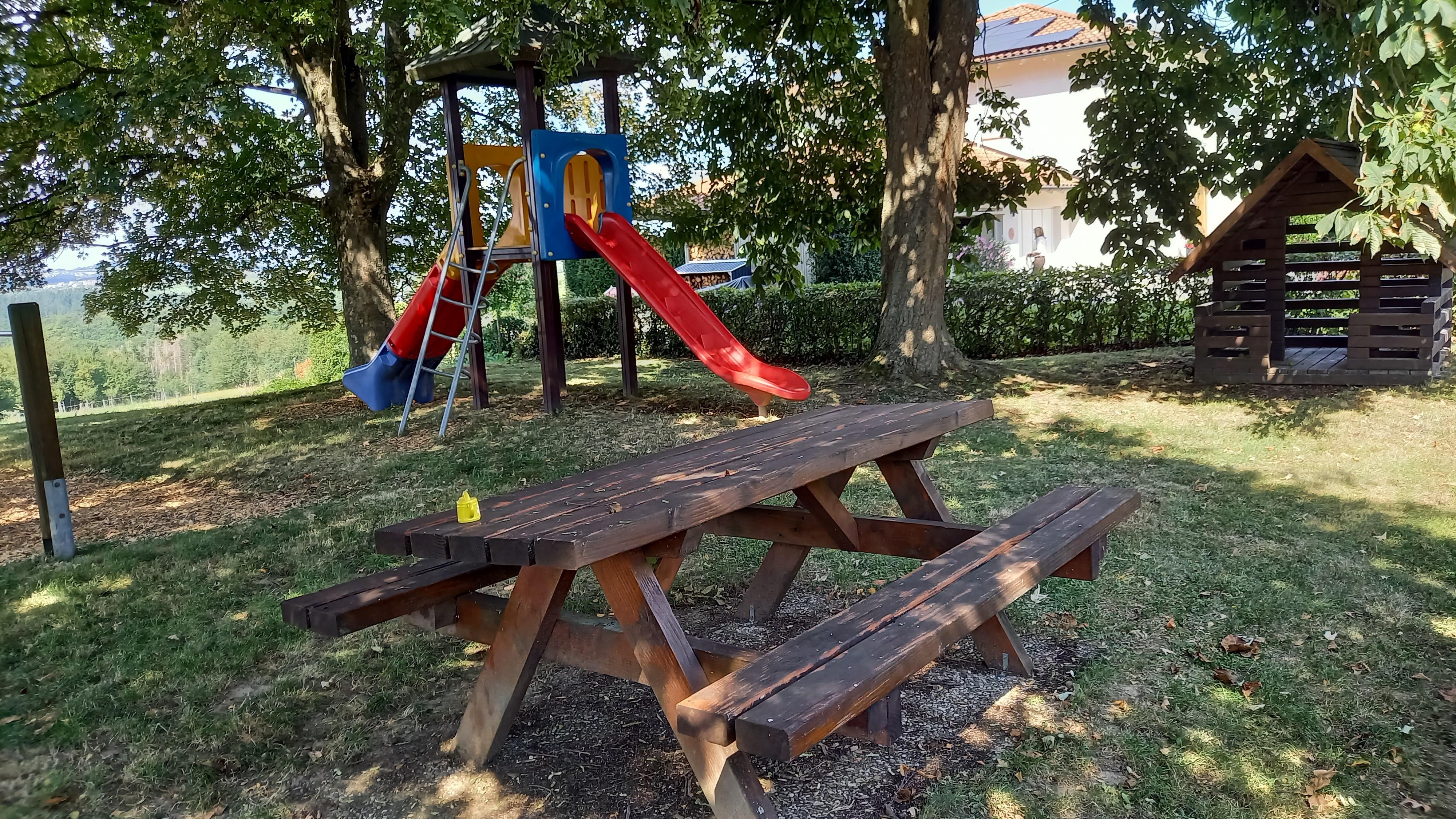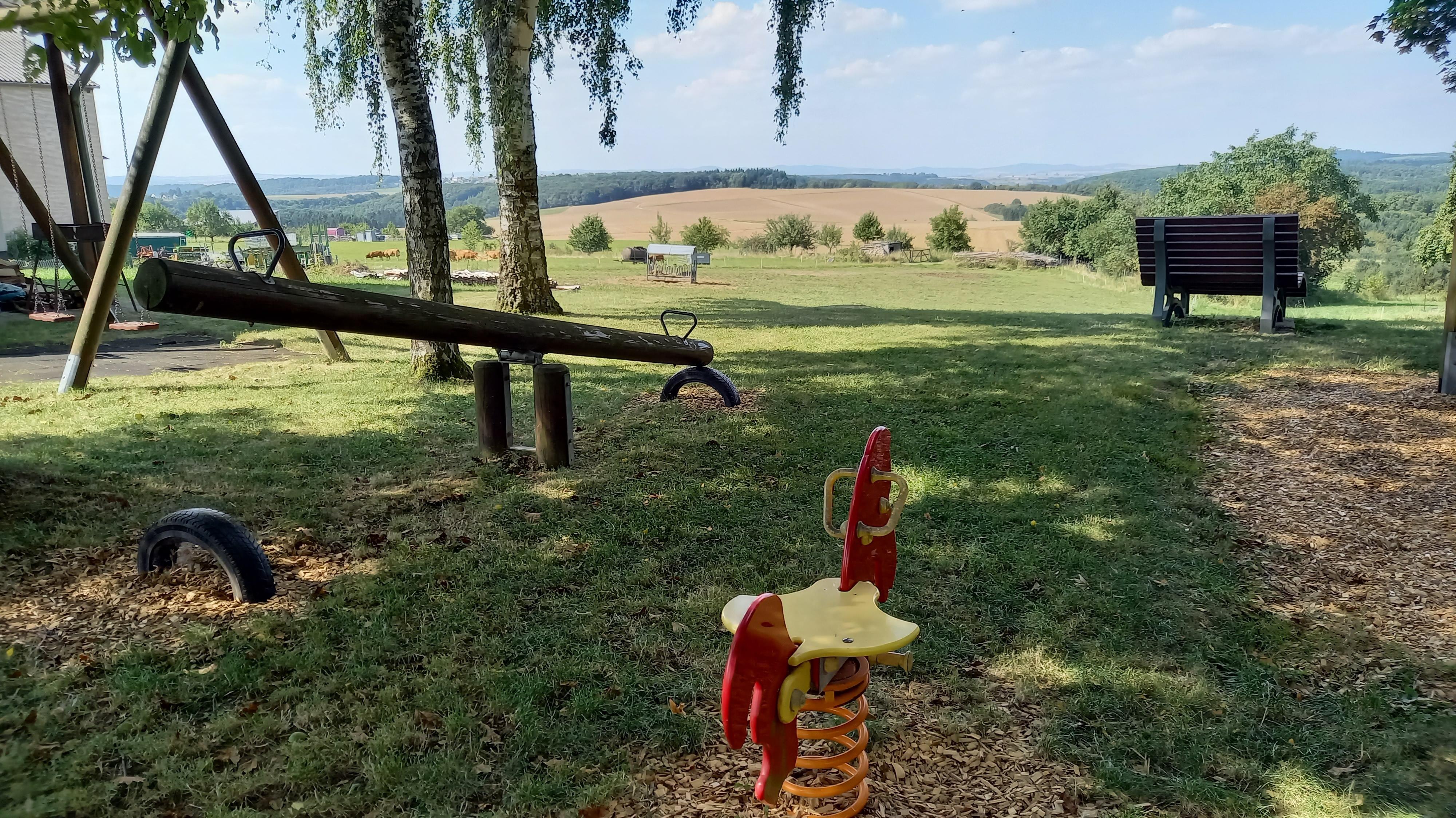 Mooie, goed onderhouden speeltuin voor kinderen met geweldig uitzicht, picknick- en ligbank.
